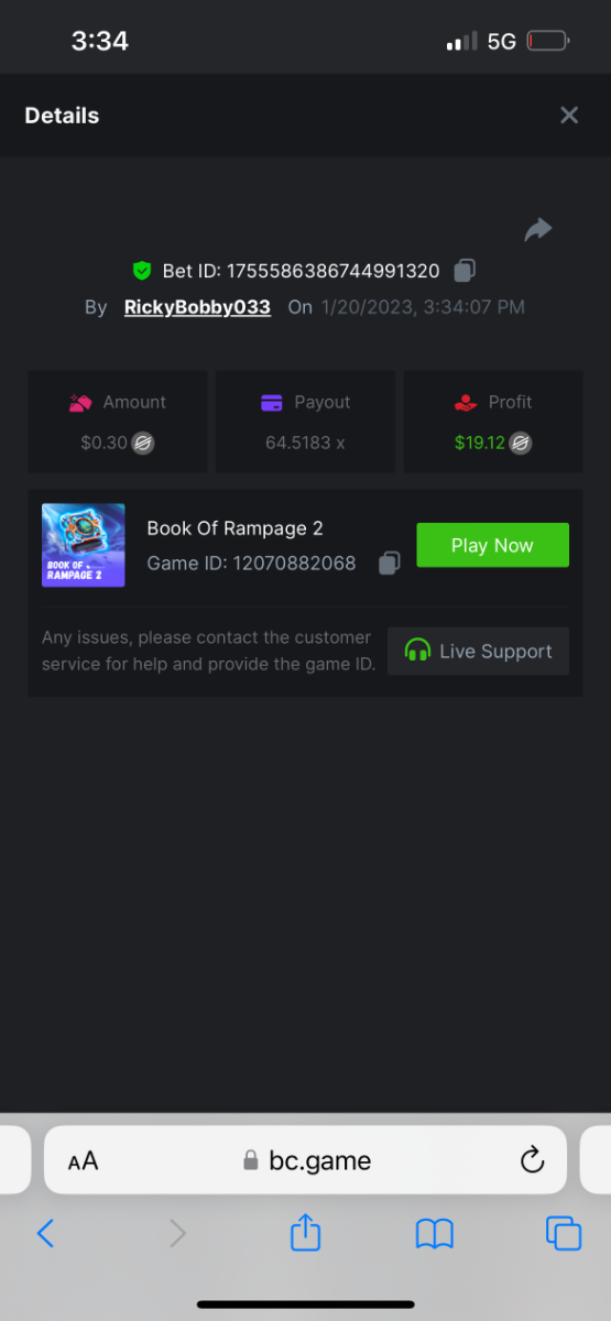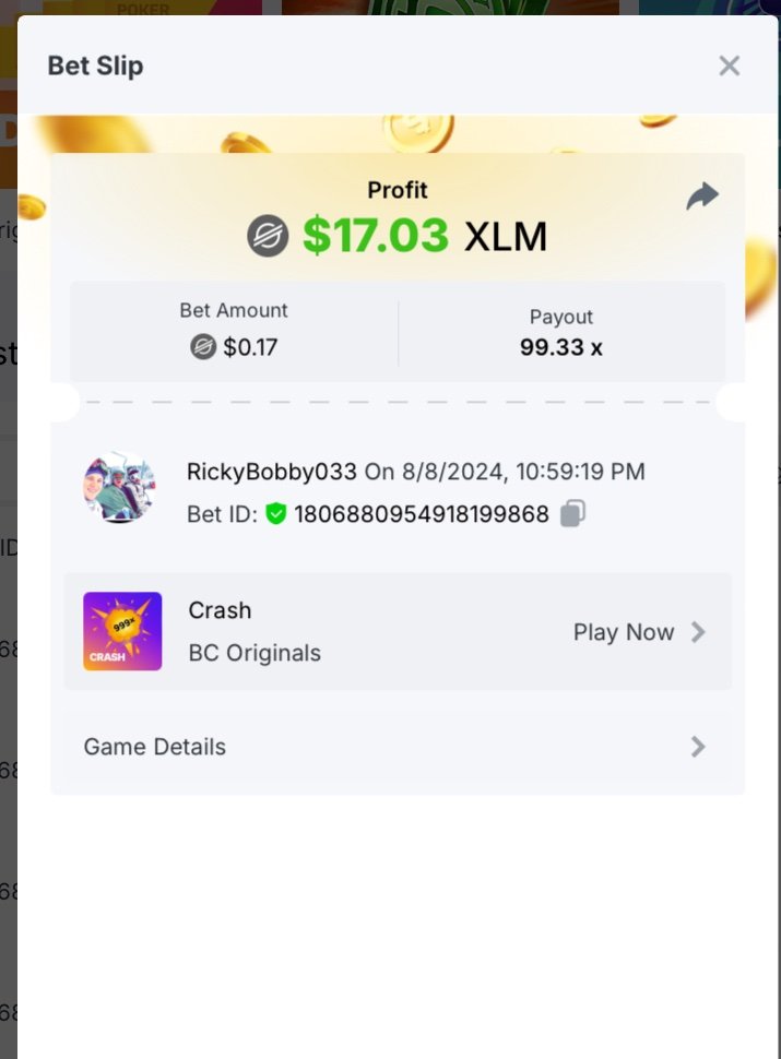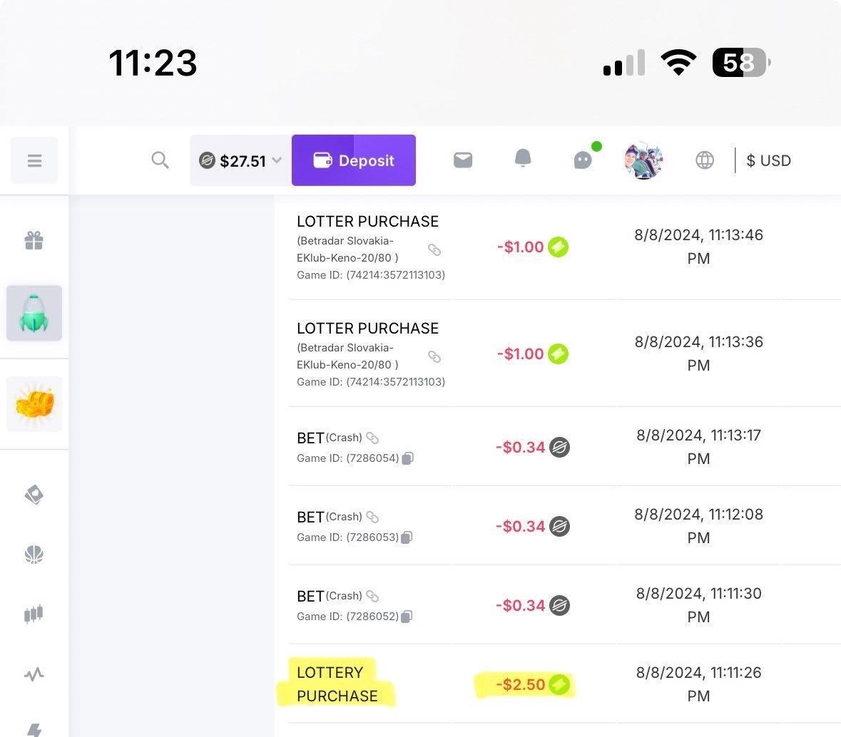 2. Casino Challenge Crash bet link - https://bc.game/#/sd/124S7HJYZTODZB Slots Challenge Game: John Wild bet link- https://bc.game/#/sd/124S9MCV6OYP8N Lottery Challenge Requirement: Buy at least 25 lottery tickets and place a bet on the lottery Sports Challenge Event: Any Olympic Games Ticket ID - 2433547995678126428 Deposit & Wager Requirements Minimum Deposit: $20 Wager at least $2,000 within the 7 days of the event period.
