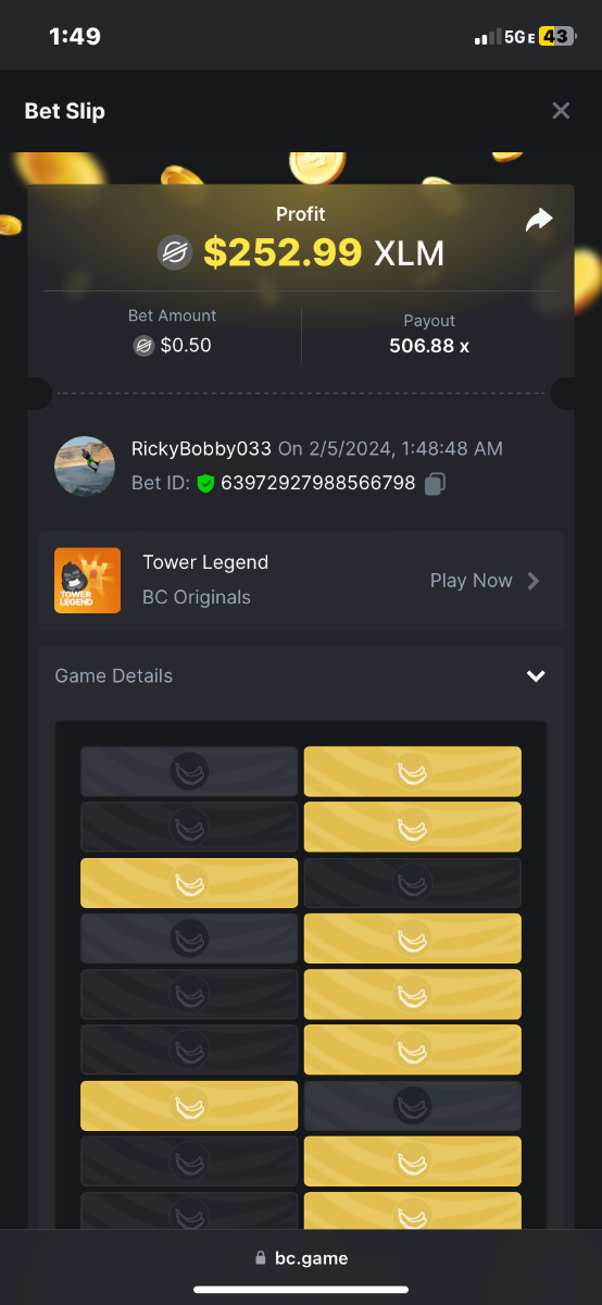 8. Tasks completed: */30 Easy: */10 Medium: */10 Hard: */10 Easy https://bc.game/#/sd/117JNXAGTUBB4J https://bc.game/#/sd/117JO3CWYZQUC3 https://bc.game/#/sd/117MWLNPXINZMB. https://bc.game/#/sd/117MXGYSHJG64Z Get a 20x payout on the Oriental Beauties. Win a Cave of Plunder bet on 7.50x payout (Completing all book symbols). Win a Sports bet with minimum odds being 1.5x (singles only) 1$ base min amount. Get a minimum 20x multi on BGaming Hello Easter slot. Get a minimum 30x multi on Red Tiger Lucky Easter slot. DONE Medium Win a bet in Roulette Single with betting on 0 only (36x). (no spread bets) Get a 76x on Plinko. Win 99x multi on Ring of Fortune. (no spread bets) Win a Sports bet with minimum odds of 2x (singles only) 1$ base min amount. Win a bet with Straight Flush in Video Poker (60x). Win a bet on Keno Single by selecting numbers 7, 30, and 8, Medium risk. (50x). Win a bet by getting a natural Blackjack(A+K/Q/J/10) with only red cards in it. Get a minimum 90x multi on BGaming Easter Heist slot. Get a minimum 100x multi on Play&Go Easter Eggs slot. Get a minimum 100x multi on No Limit City Bonus Bunnies slot. Hard Get a 49.50x on Wheel (50 segments, High risk). https://bc.game/#/sd/117N1QC7IHUPLF Win with a minimum 500x multi on Limbo. https://bc.game/#/sd/117J76NFEKACR7 Win with a minimum 999x on Crash. Post a winning bet with 21 mines and 3 diamonds on Mines game, (569.25x). Win a bet on Keno Single by selecting numbers 10, 11, 12 and 13, High risk, (259.00x). Get at least 300x multi on Pragmatic Play Rabbit Garden slot. Get a minimum 300x multi on Wazdan Burning Sun Easter slot. Win a Sports bet with minimum odds of 10x (any bet allowed) with 1$ base min amount.