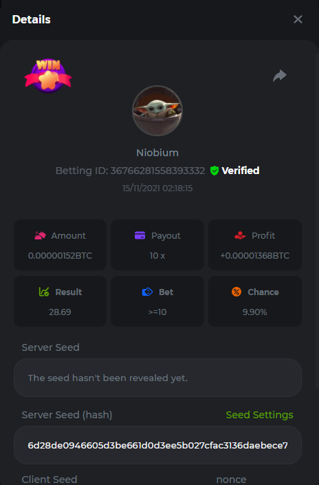 $1k Prestige Hilo Challenge #6 🂡 We are pleased to announce this week's challenge available for any level VIPs at BC.Game. Let’s see who can get the highest payout multiplier on our exclusive Hilo, we challenge you with a total prize pool of $1,000. What's the Challenge? Win the highest multiplier you can on in-house Hilo (Skipping cards is allowed). In case of a tie, the player with a higher bet amount will be given the advantage. If there is still a tie, the one who posted or edited your post first shall be named the winner for the ranked spot. Minimum VIP There's no minimum VIP level Minimum Payout Minimum payout to qualify is 20x Minimum Bet Size $0.05 USD equivalent Eligible Coins All coins are eligible (excepting JB) Available Prizes 1st Place....... $400 2nd Place..... $200 3rd Place...... $100 4th Place......$50 5th-15th.........$20 How to Enter To enter, copy the bet ID of the bet you'd like to submit. Once you've copied it, post it as a reply to this thread like so: Betting ID: 491945554084069 In the same post, upload a screenshot of your win by clicking the game ID WITH VIEW IN USD mode ENABLED (accessible at the bottom of dropdown menu for your wallet up top. This way, we can ensure that your bet indeed met the minimum requirement at the time of placing it: Please combine all of your hits together in a SINGLE post. Edit your existing post for additional hits, don't create a new post. Bets must be posted within 24 hours of placing bet in order to keep things fair for everyone. Bets must be made during the specified time window stated above. This thread will lock automatically when the time period is over. One (1) entry per household. Anyone found attempting to win multiple prizes will be disqualified from this challenge as well as all future challenges. Failure to follow instructions will result in your submission being null and void. By entering this challenge, you acknowledge that BC.Game has the final decision on results and placement. Payouts will be made within 72 hours of challenge completion, please be patient, we promise you that we haven't forgotten. We check and double check to make sure the rightful winners receive their prize. Prizes will be paid out in BCD. Good luck everyone!
