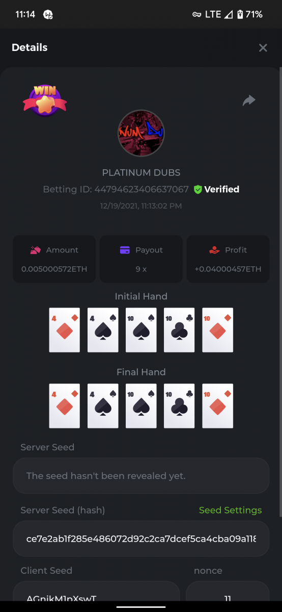 Betting ID: 39744648104640636 it would have been alot higher but my phone rotated and I lost 6 free spins they need to fix that shit