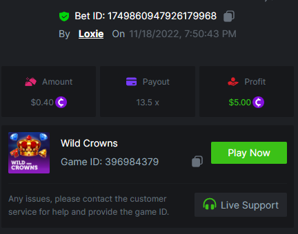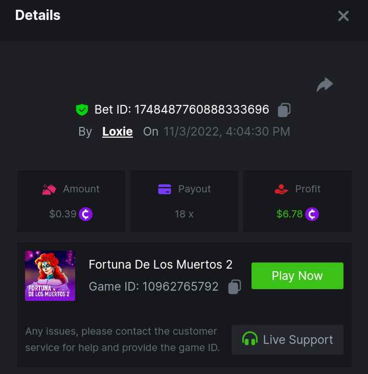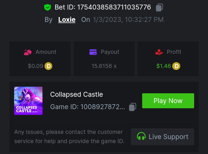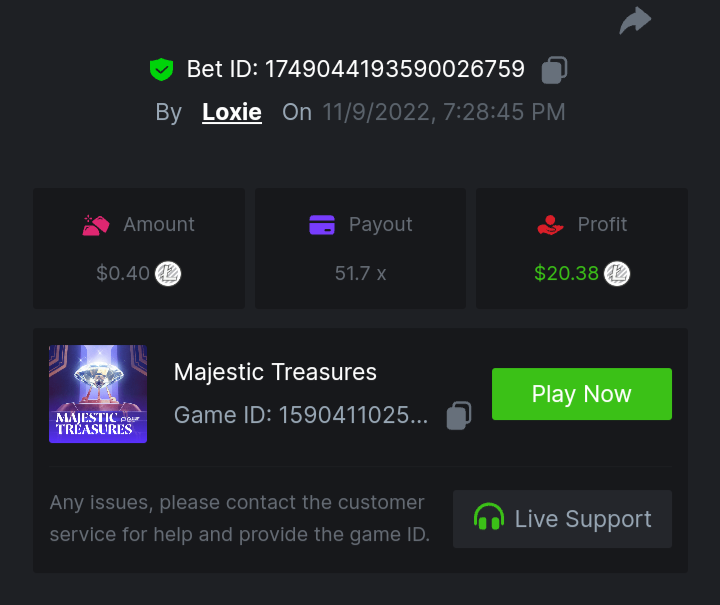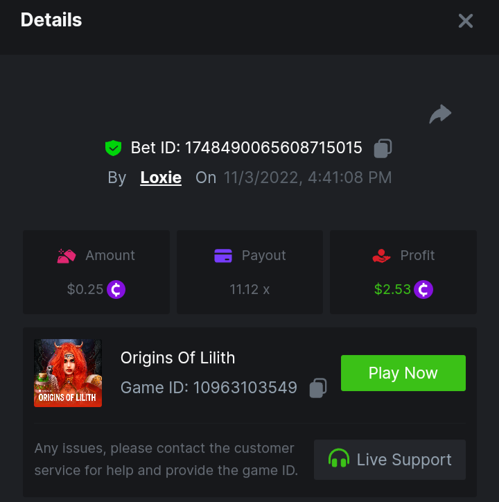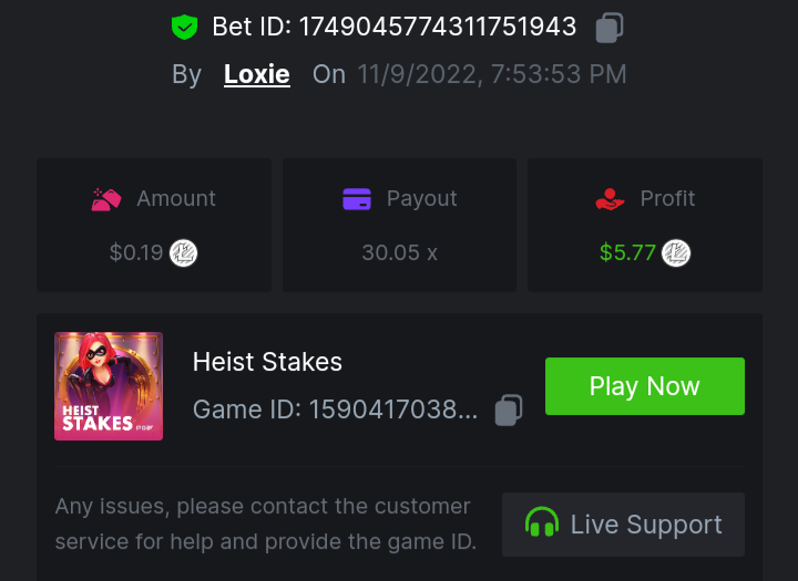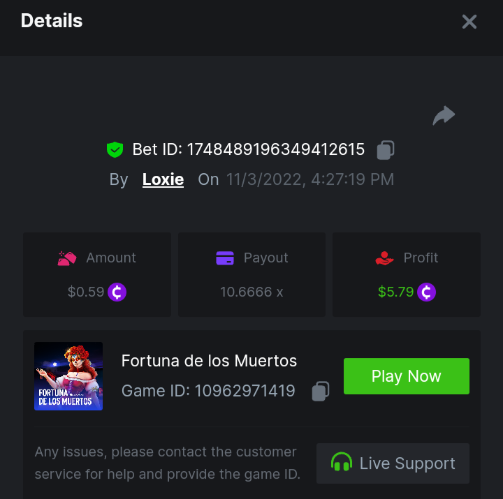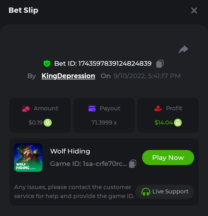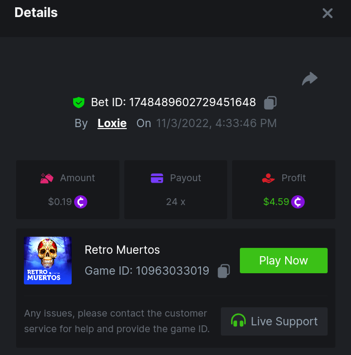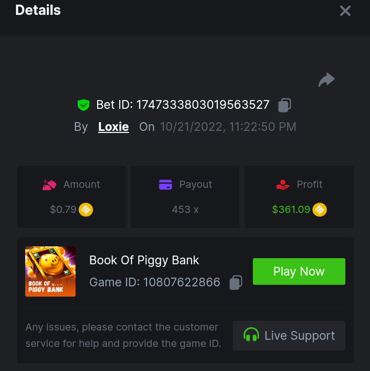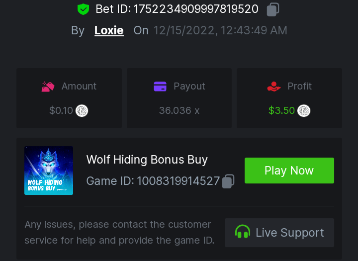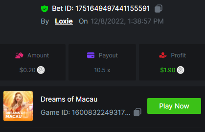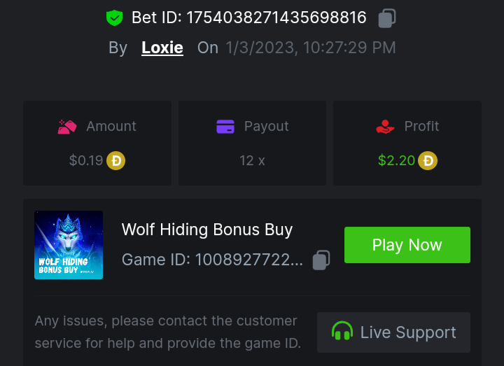 1. A millimeter off of the 500 free spins, got 5 instead. Hit 3 scatters on the first free spin but didn't give extra spins sadly. Total actual profit around $1. https://bc.game/#/sd/111UE52X1MAO7N