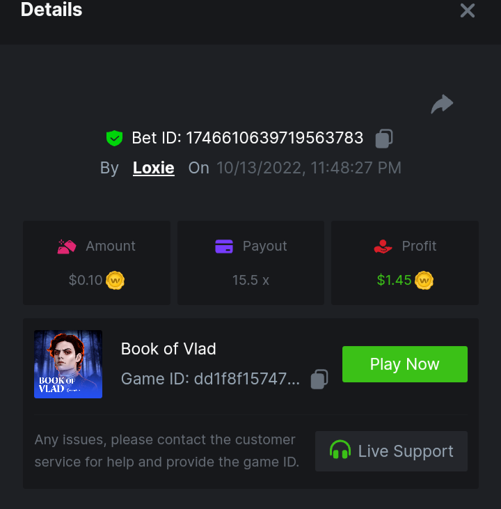13. Vampire's Charm - 304.8 x Wild Bandito - 10.25 x
