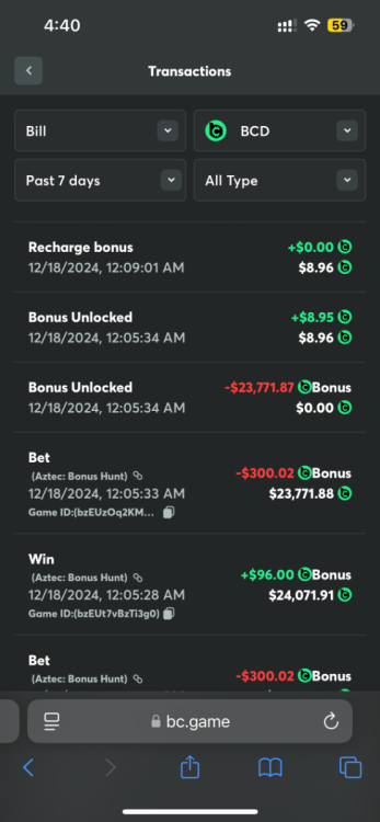 So ask the title said I started with about 8-9$ of Bonus BCD and won $23,771.87 USD but then the game crashed and my account zeroed out and now I don’t know what to do I have videos of me winning and going to my profile and it’s all viewable on my bill it says bonus unlocked then -23,771.87 then under that 0 I don’t know what to do in this situation if anyone can help me figure it out I can upload the 2 videos I have too if needed but honestly every thing is in my transaction bills