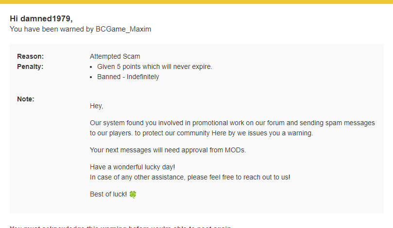 Good afternoon moderator, I received a warning in my email from you for something I did not do, and that is that I made the mistake of reporting a user who invited me to another casino and when reporting it the system assumes that I am the one who is spamming, I reiterate moderator, I report that user for spam and you penalize me. I would like to know how the system knew who reported the spam? You check my private messages to know if I contact someone ......