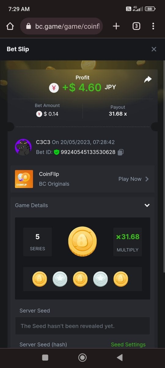 C3C3 replied to BCGame_Maxim's topic in VIP Challenges