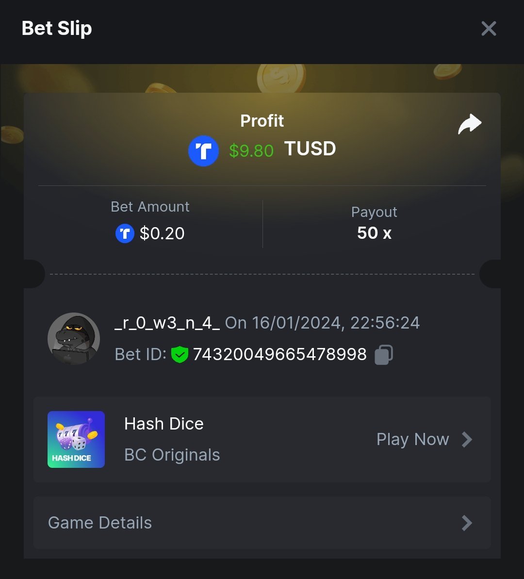 Crash x99 .05 https://hash.game/#/sd/124NMZ6TN1T0CR JOHNWILD x50 https://hash.game/#/sd/124NO3APWVOK23 Buy at least 25 lottery tickets and place a bet on the lottery SPORTBET 1.5x ODDS 1USD BET TICKET ID: 2432895037160431791 DEPOSIT 20USD WAGER 2000USD