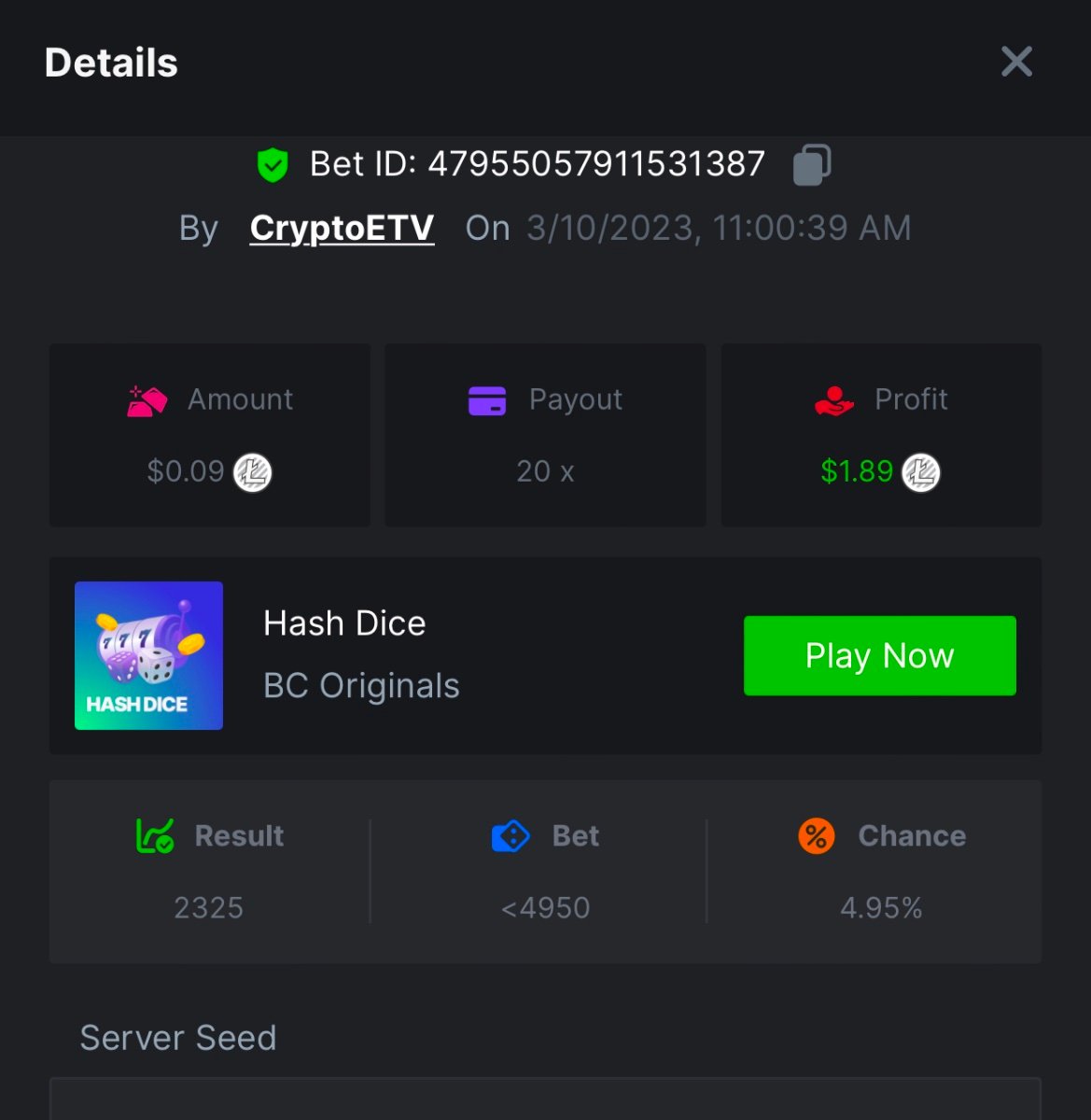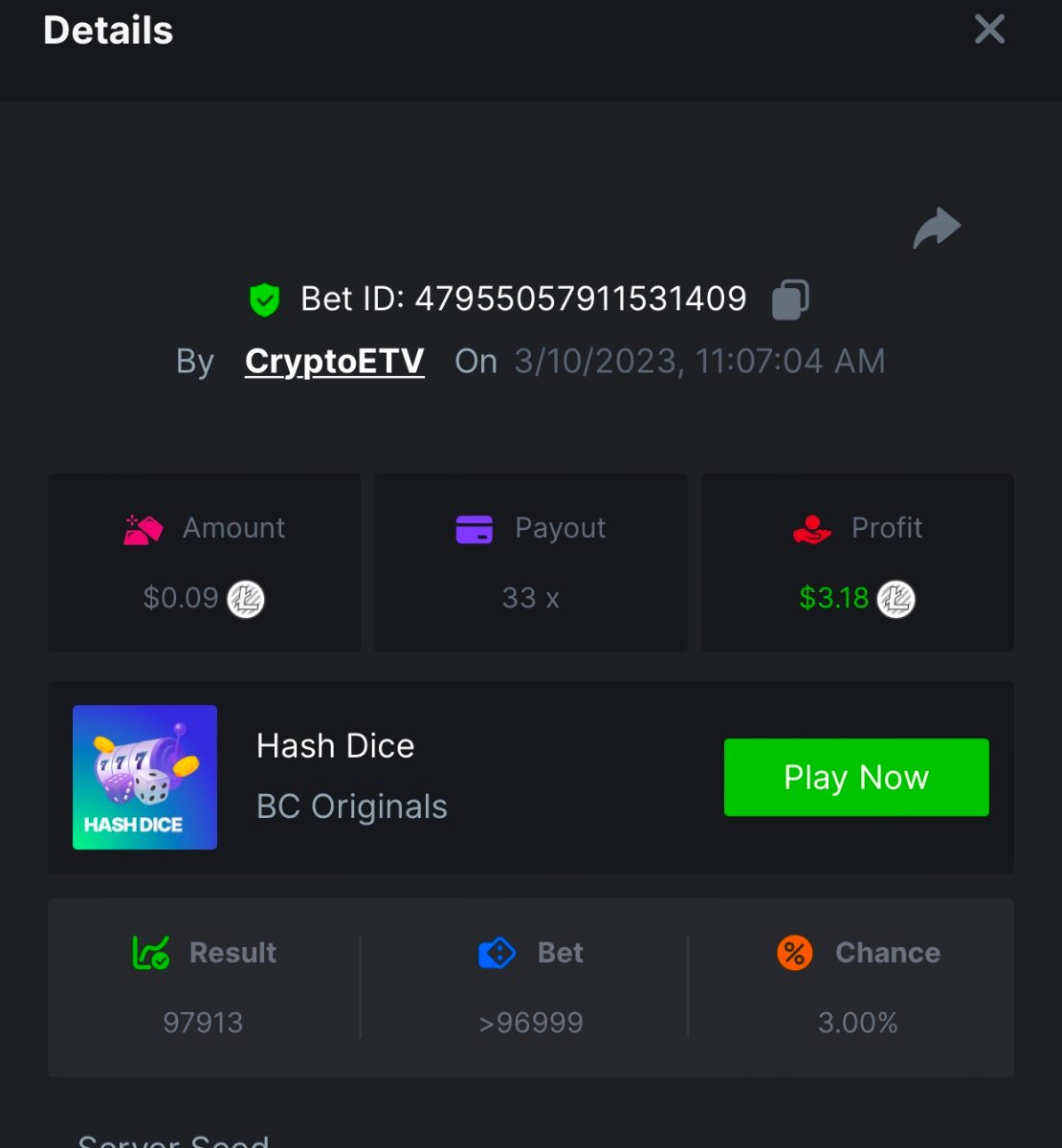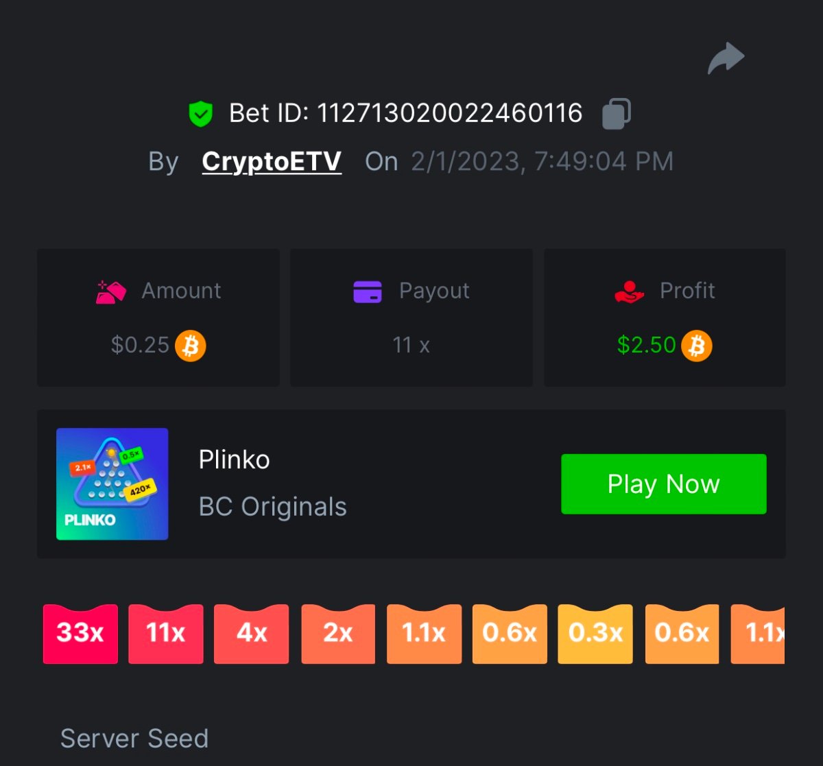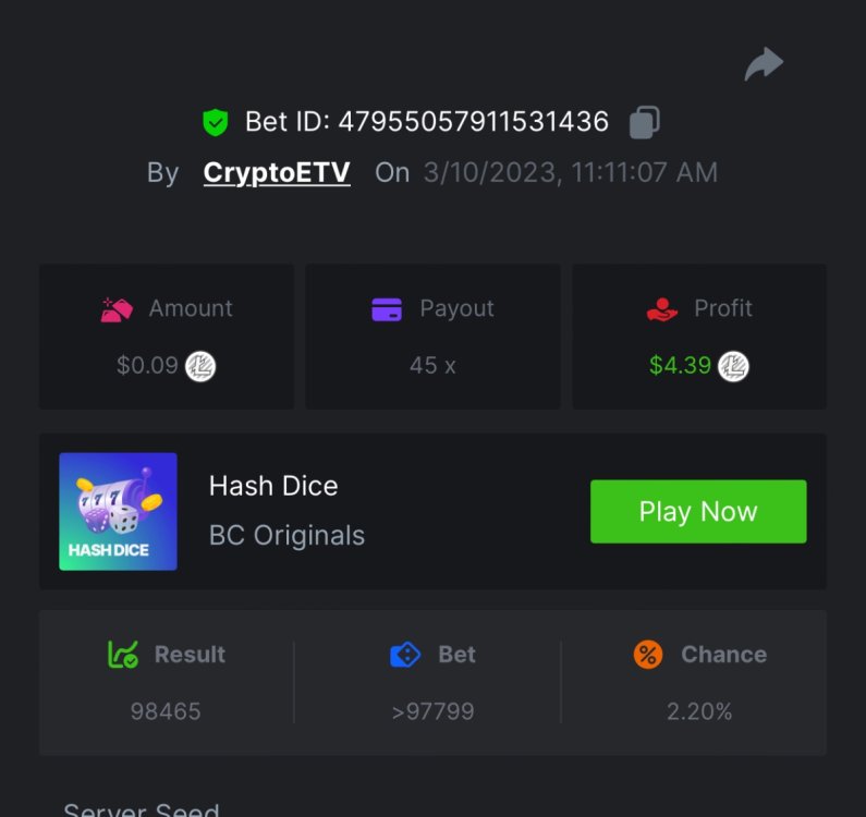 10. Wow 11,111 is the one to beat. That’s a good one. x20 https://bc.game/#/sd/111PSDDXZPE2OJ