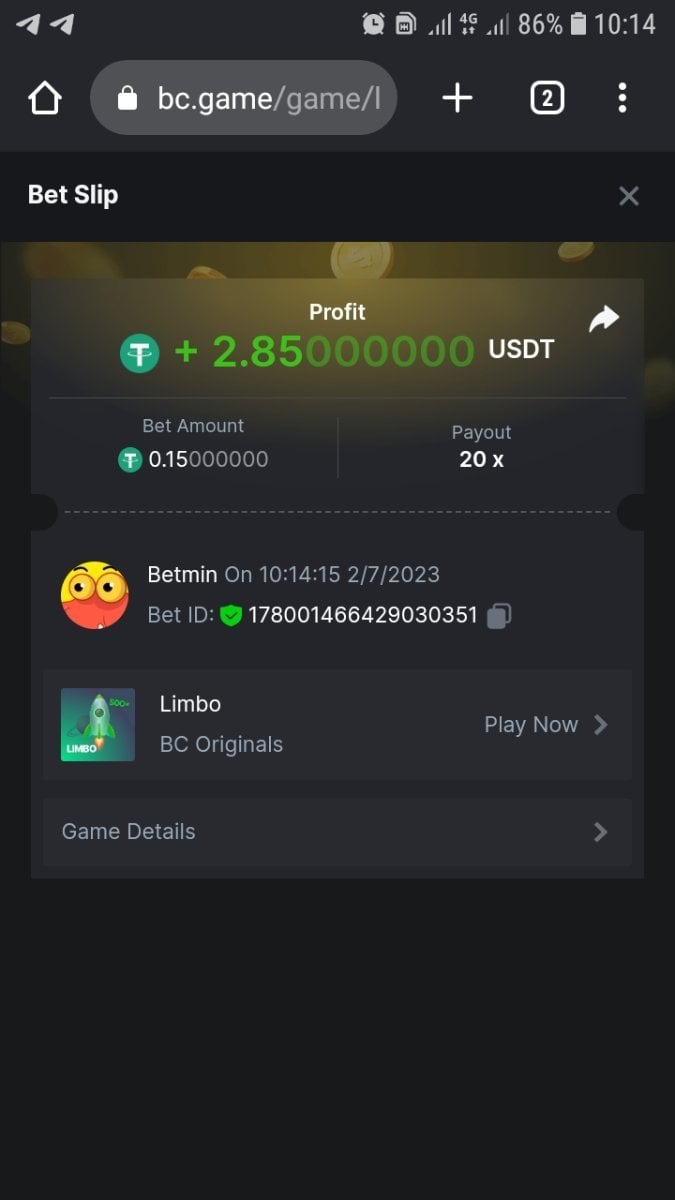 10. I've joined the forum event; Now it's your turn to win generous rewards from BC.GAME! Help me! I can not submit new win!