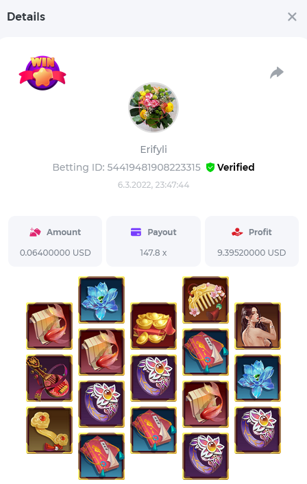 Betting ID: 1725030010104246400 534.60x Betting ID: 1725032592233159943 154.35x Betting ID: 1725487027814036096 325.45x Betting ID: 1725191868935935751 84x