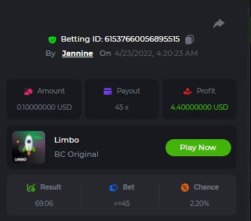 Easy 1. IG USERNAME : @baka_viki 2. instagram link : https://www.instagram.com/p/CcX7-sXv1TY/ USERNAME IG : @baka_viki 3.username twitter : @somaynyakak 4.https://twitter.com/Somaynyakak/status/1514966941072769028?s=20&t=4bn1sL6D6AksyJV6aQheXQ 5. Facebook username : www.facebook.com/blackdevil1998 7. ticket ID 2126783238671315164 MEDIUM 1.https://bc.game/sd/?sd=10IIGHFHJ7PDZN 5. Ticket ID : 2126722854337786344 HARD 1. wheel 49.50x https://bc.game/sd/?sd=10IIGR3HANENTF