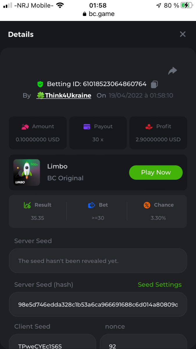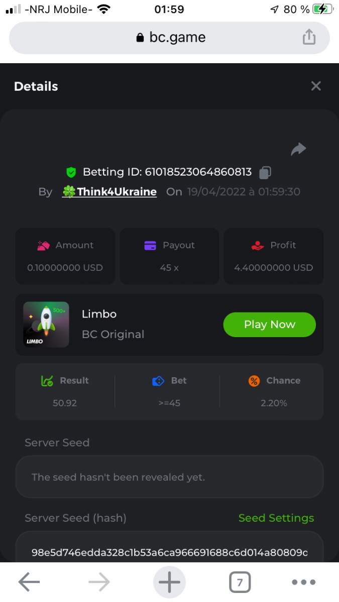 2. Hello i don’t have photo of I’d gaming because I have joke after but I have a screenshot of my bet here mY ID to this game : MY PAYOUT ITS x 115 ~_ I thinks 18550904349273521 27/02/2022 à 22:53:55 my payout it’s x 115 _~ i think i spare it’s ok ! thansk Wrong participation