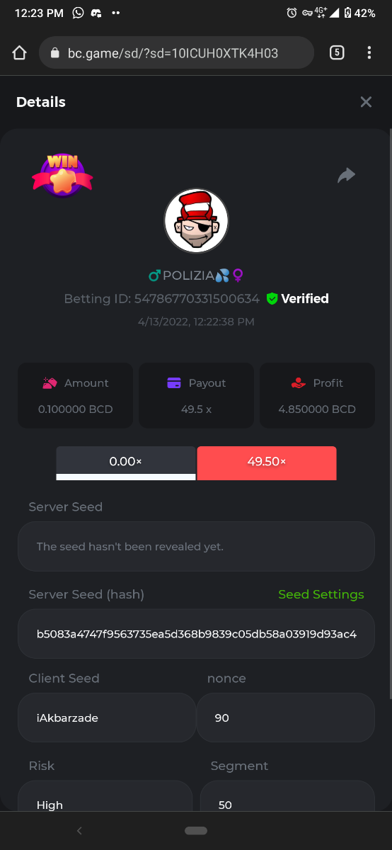 POLIZIA replied to BCGame_Maxim's topic in VIP Challenges
