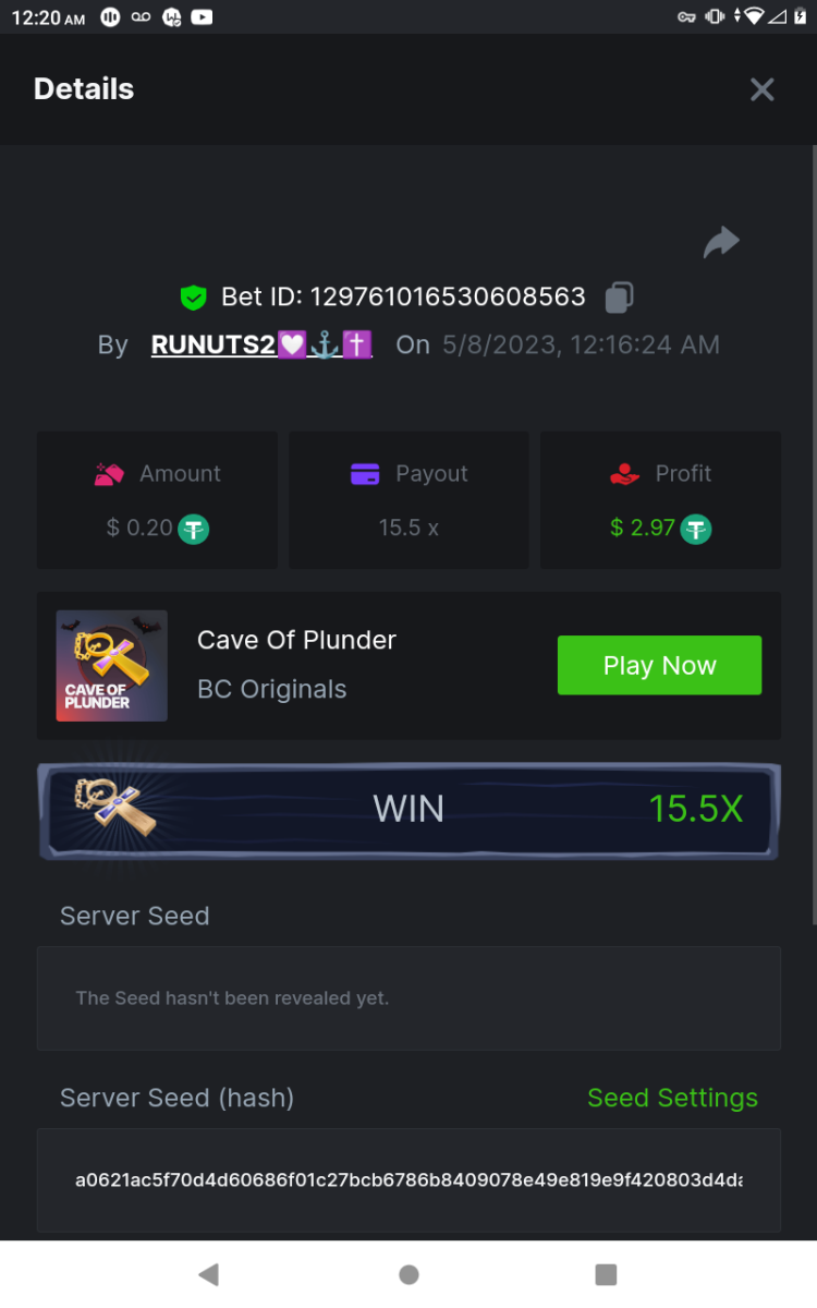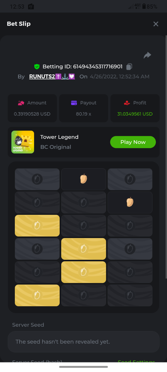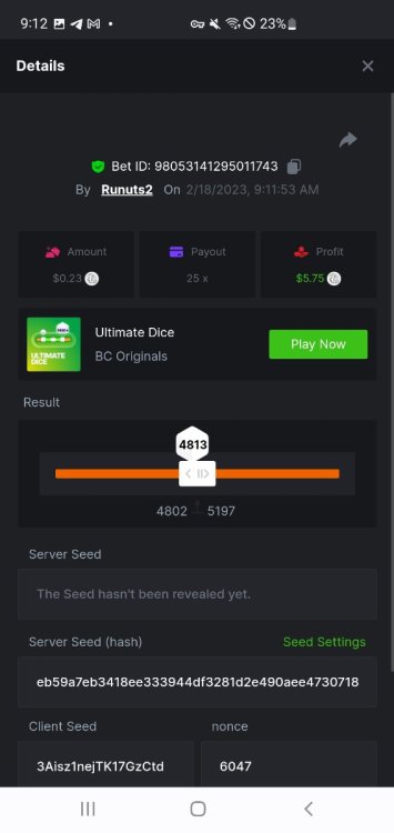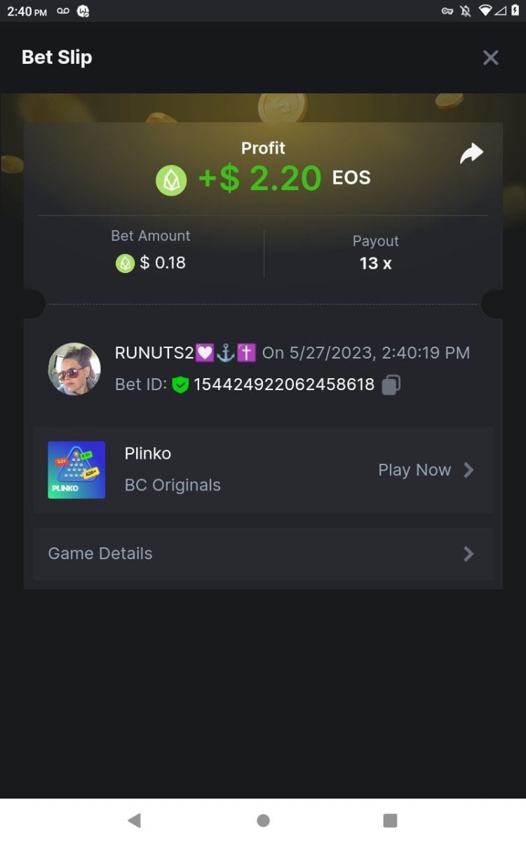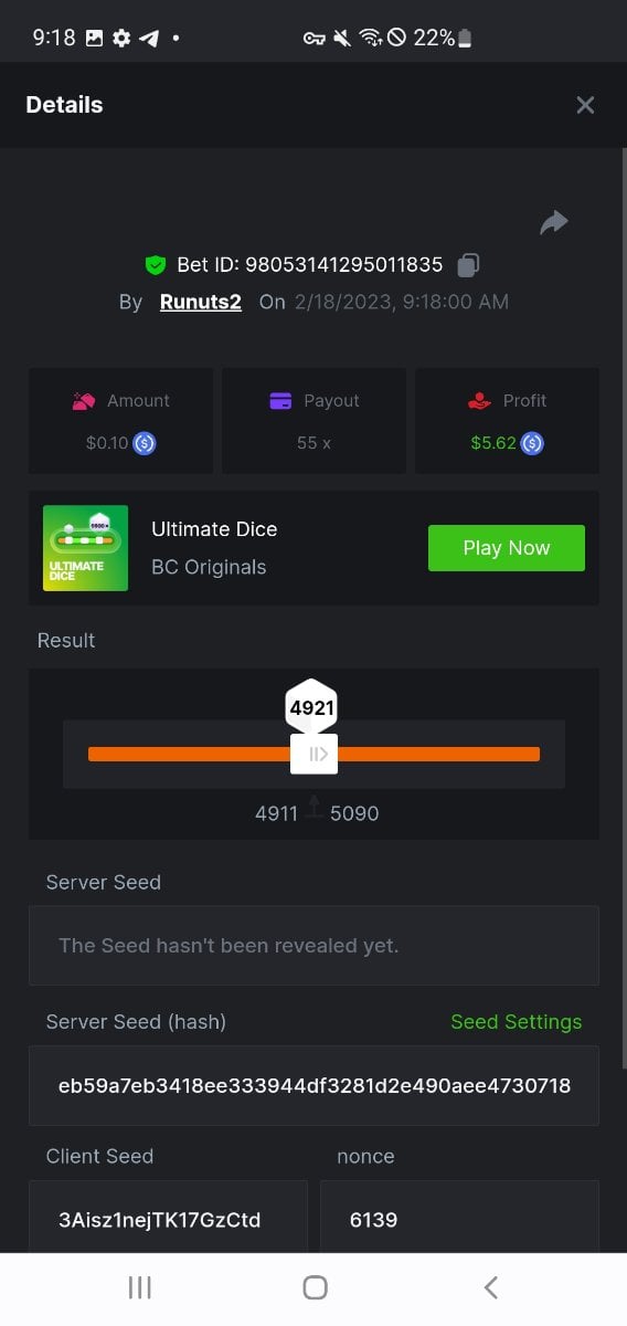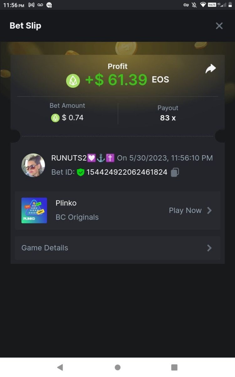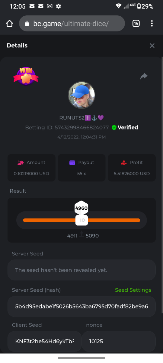 1. 16x | 26x | 27x | 29x | 33x | 37x | 43x | 56x | 58x | 76x | 83x | 88x | 110x | 120x | 130x | 170x | 260x | 420x | 620x | 1000x Some bets say 09 cents but showed $0.1 when I did the bet https://bc.game/#/sd/11FZ13ER2KDUZR https://bc.game/#/sd/11FZ1O7RLXAK9Z https://bc.game/#/sd/11FZ20E4G643PN https://bc.game/#/sd/11FZ2B9RQX25LV https://bc.game/#/sd/11G65L0NGEB7PN