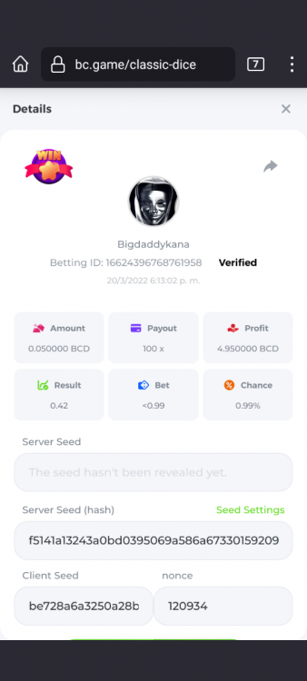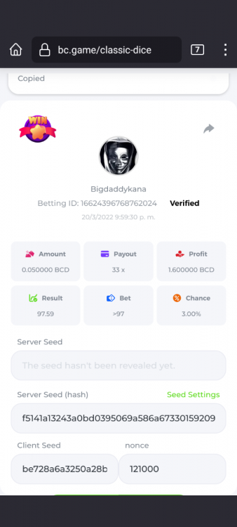 7. @Bigdaddykana ID de la apuesta: #17055727449280429 https://bc.game/sd/?sd=10FN83JQFWFTHV