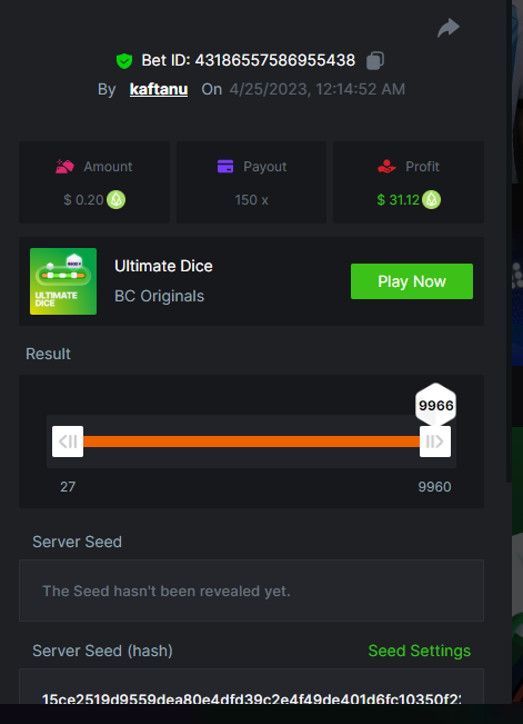 $1,500 Exclusive Weekend Hash Dice Prestige Challenge #76