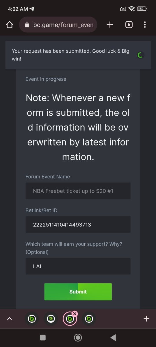 1. I've joined the forum event; Now it's your turn to win generous rewards from BC.GAME! 2222511410414493713
