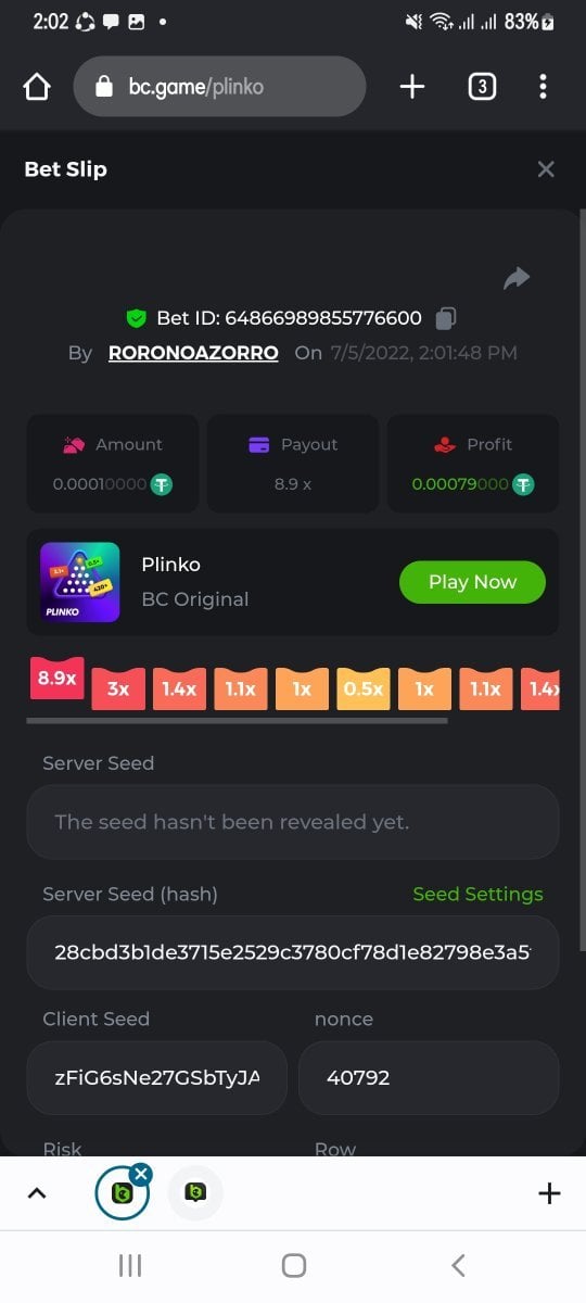 2. Sa totoo lng wala akong paboritong laro , dun ako sa pera o kung saan ako makakakuha ng profit , salamat sa survey na ito na may gantimpala sa magsasaad ng kanyang paboritong laro. Ngayon ay mayroon na akong paboritong laro kung saan ay madalas ako matalo . Ito ay mines . Actually tatlo sila eh baka madisquilified ako kasi sabi isa lng dw . Napili ko ang mines na kung saan ay mas malaki ang tyansa na lumago ang aking deposito na 0.5$ .bakit?! Dito pwede ka magset up ng payout na gusto mo.. Ikaw din pipili ng diamond o hahanap ng bomba na papatay sayo . Hindi tulad ng iba na nakadepende lng sa swerte tulad ng wheel plinko at mdming png iba kung saan mdlas ako talo . Pwede ka mag assume ng payout na kung saan e instant paldo ka pag makabisado mo na . Karanasan ko dito ay nagawa kong mapagapang ang aking napulot na barya na kung saan ay umabot ito nang 600dollars . Mahaba na ba dagdagan p nten . Paborito ko ito kasi gusto ko . Hindi nman pwedeng paborito mo yong ayaw mo . And i thankyou