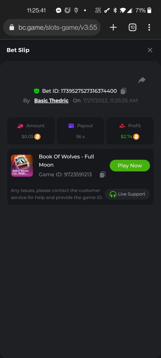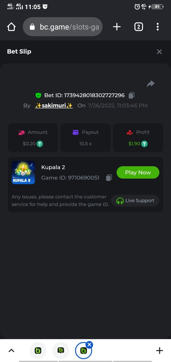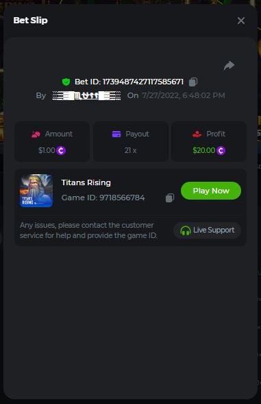 MyloveJ Posted July 26, 2022 Share Posted July 26, 2022 (edited) 1. 20x https://bc.game/sd/?sd=10PJT8SB83Q8SZ 2. 22.5 https://bc.game/sd/?sd=10PJTL9MCEL53N Edited July 26, 2022 by MyloveJ Link to comment Share on other sites More sharing options...