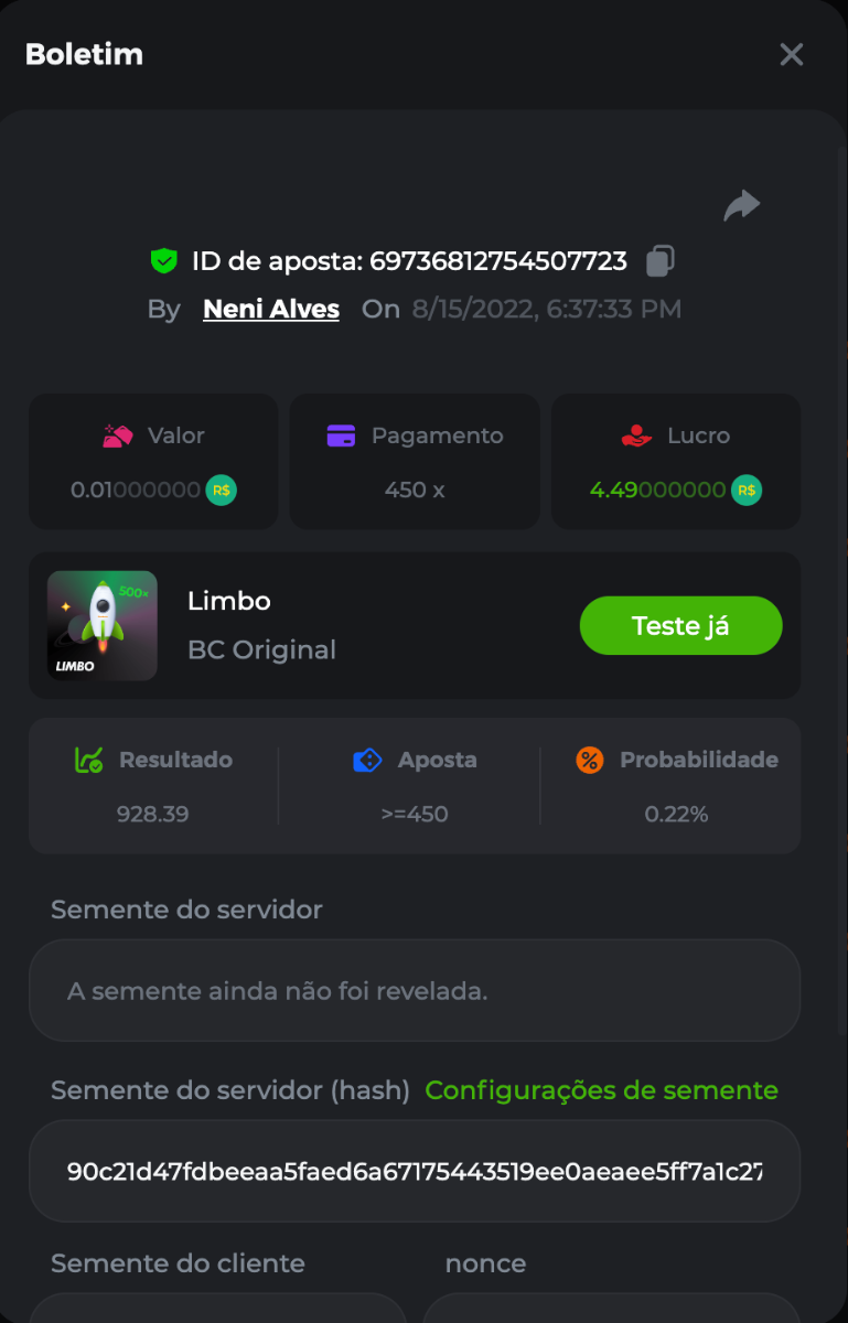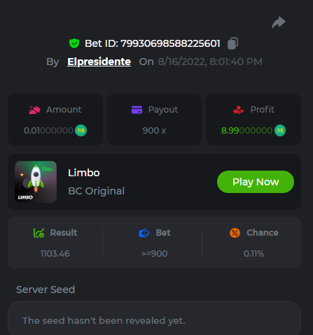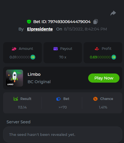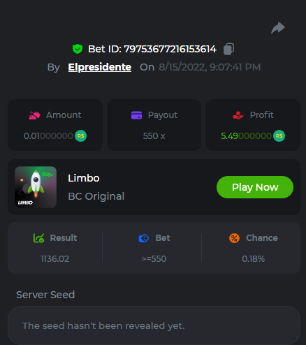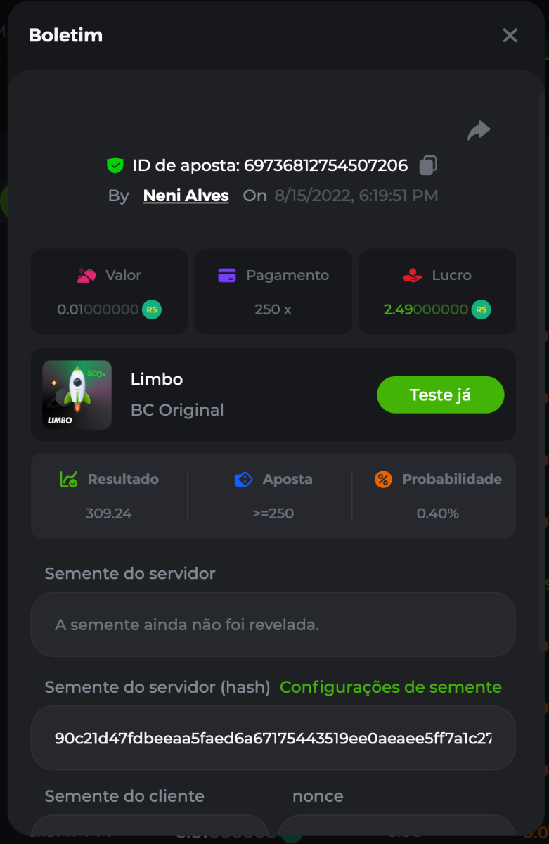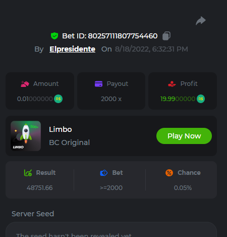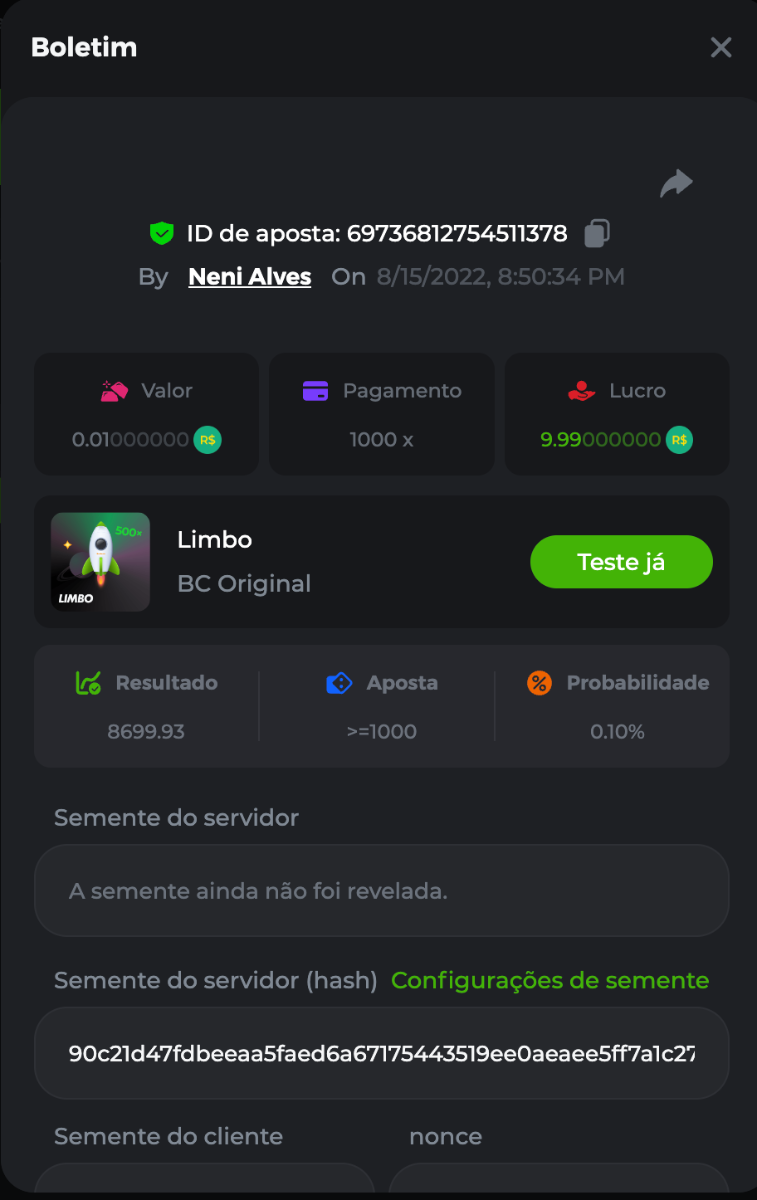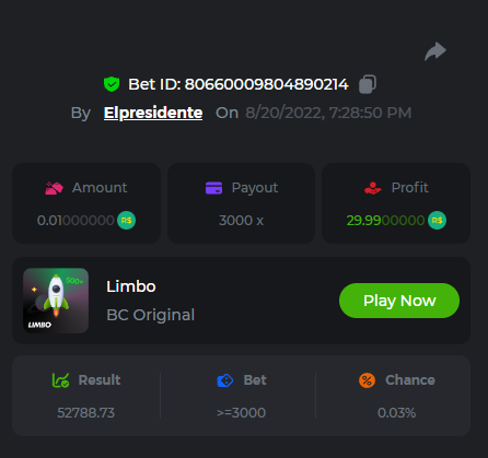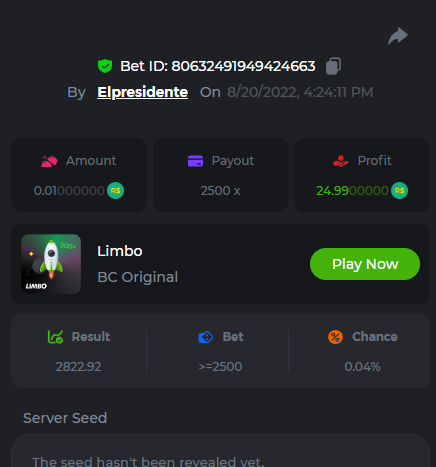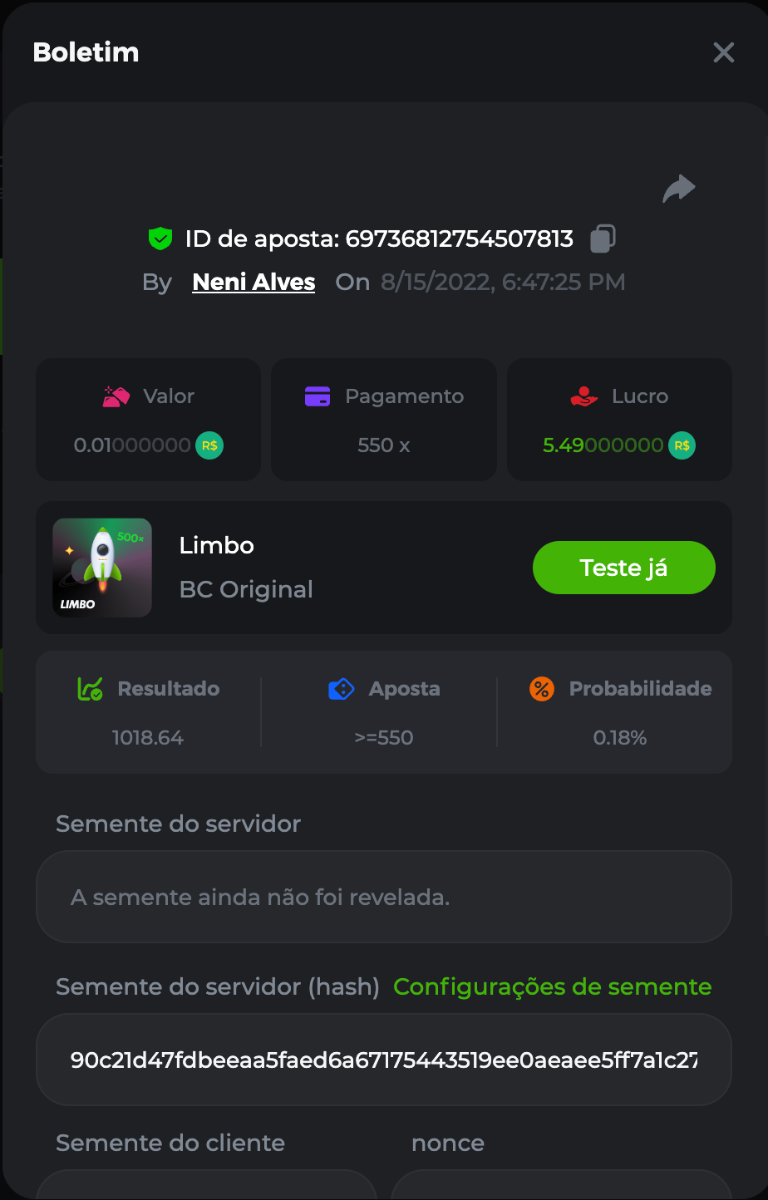 BC-Alerquina Posted August 18, 2022 Share Posted August 18, 2022 On 8/15/2022 at 1:43 PM, BCGame_Mateus said: 250 BRL Semanal Evento Limbo Termina: 21, Ago 23:59 -3 UTC "Event restricted to users from the Portuguese Community" Vamos explorar o universo com o foguete Limbo. Um foguete não voará a menos que alguém acenda o fusível, para isso vocês precisam completar o maior número de multiplicadores exatos. A galáxia inteira é sua e uma parte do prêmio total de 250 BRL também pode ser sua. Lembre-se: o céu não é o limite, há pegadas na lua Qual é o desafio? Complete o máximo dos 30 pagamentos a seguir em nosso Limbo interno . Deve ser um multiplicador exato. | 20x | 30x | 45x | 55x | 60x | 65x | 70x | 90x | 120x | 200x | 250x | 300x | 400x | 450x | 550x | 700x | 825x | 900x | 1000x | 1200x | 1500x | 2000x | 2500x | 3000x | 4000x | 5000x | 6000x | 7000x | 8000x | 9000x | 10000x | Cada pagamento que você acertar acima conta como 1 ponto (máximo de 1 ponto para cada pagamento). Se houver empate, o jogador com o maior valor médio de aposta (em BRL) será o vencedor. Se houver empate no valor e no pagamento, será considerado no Ranking aquele que postou ou editou seu post primeiro. VIP mínimo Não há nível VIP mínimo Pagamentos mínimos Acerte pelo menos 3 pagamentos para se qualificar Aposta Mínima Equivalente a 0.01 BRL Coins elegíveis Todas as criptomoedas são elegíveis (exceto JB) Prêmios disponíveis 1º lugar ....... 70 BRL 2º lugar ....... 50 BRL 3º Lugar ....... 30 BRL 4º Lugar ....... 20 BRL 5º Lugar ....... 10 BRL 6º Lugar ....... 5 BRL 7º Lugar ....... 5 BRL Os 60 BRL restantes serão divididos entre todos os outros jogadores que atenderem aos requisitos mínimos, pagamentos mínimos e aposta mínima. Caso o evento ultrapasse 50 usuários a premiação do evento será dobrada Como participar: Para participar, copie o link da aposta que deseja enviar. Depois de copiá-lo, cole-o como resposta a este tópico da seguinte forma: Link: https://bc.game/sd/?sd=10QUOJE1NMVTOZ Na mesma postagem, faça upload de uma captura de tela de sua vitória clicando no ID do jogo COM VISUALIZAÇÃO no modo BRL ATIVADO (acessível na parte inferior do menu suspenso da sua carteira na parte superior. Dessa forma, podemos garantir que sua aposta realmente atendeu ao requisito mínimo no momento da colocação: Link: https://bc.game/sd/?sd=10QUOJE1NMVTOZ Por favor, combine todos os seus hits em um ÚNICO post. Edite sua postagem existente para obter hits adicionais, não crie uma nova postagem. As apostas devem ser postadas dentro de 24 horas após a colocação da aposta para manter as coisas justas para todos. As apostas devem ser feitas durante a janela de tempo especificada acima. Este encadeamento será bloqueado automaticamente quando o período de tempo terminar. Uma (1) entrada por família. Qualquer pessoa encontrada tentando ganhar vários prêmios será desqualificada deste desafio, bem como de todos Boa sorte! https://bc.game/sd/?sd=10R49SN0UIFXUB Link to comment Share on other sites More sharing options...