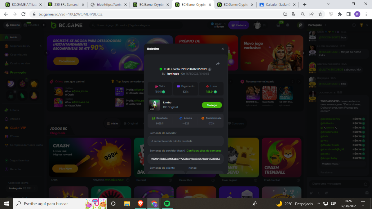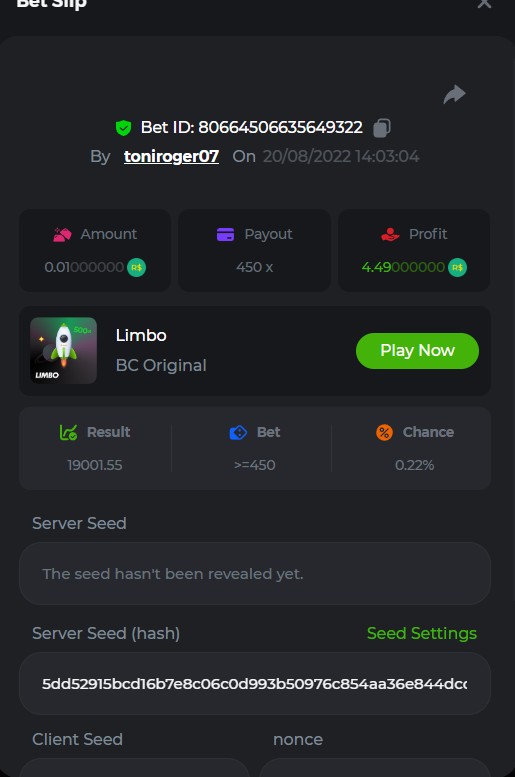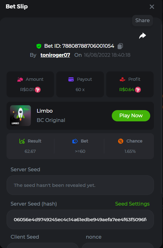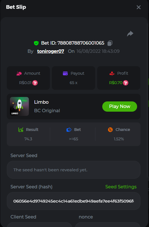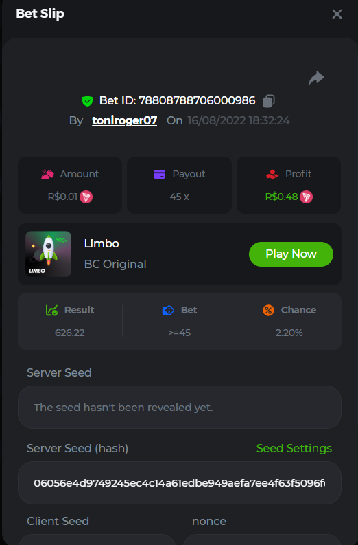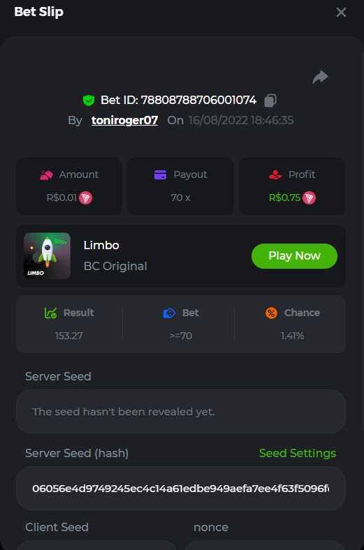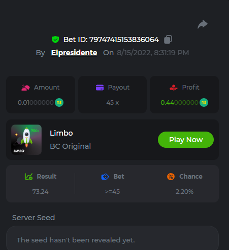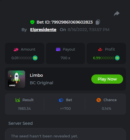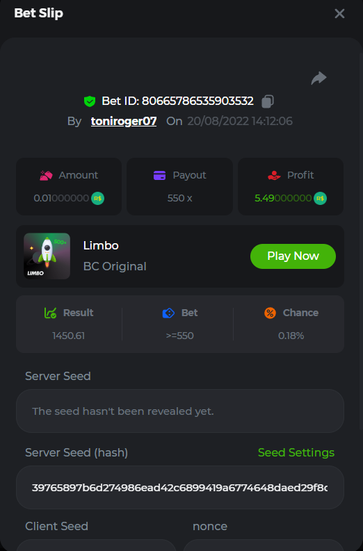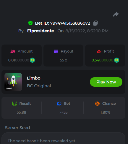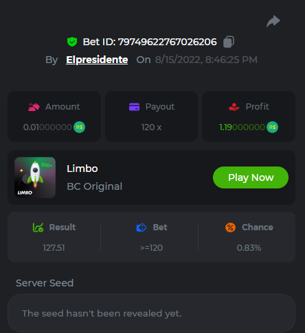 BC-Alerquina Posted August 18, 2022 Share Posted August 18, 2022 On 8/15/2022 at 1:43 PM, BCGame_Mateus said: 250 BRL Semanal Evento Limbo Termina: 21, Ago 23:59 -3 UTC "Event restricted to users from the Portuguese Community" Vamos explorar o universo com o foguete Limbo. Um foguete não voará a menos que alguém acenda o fusível, para isso vocês precisam completar o maior número de multiplicadores exatos. A galáxia inteira é sua e uma parte do prêmio total de 250 BRL também pode ser sua. Lembre-se: o céu não é o limite, há pegadas na lua Qual é o desafio? Complete o máximo dos 30 pagamentos a seguir em nosso Limbo interno . Deve ser um multiplicador exato. | 20x | 30x | 45x | 55x | 60x | 65x | 70x | 90x | 120x | 200x | 250x | 300x | 400x | 450x | 550x | 700x | 825x | 900x | 1000x | 1200x | 1500x | 2000x | 2500x | 3000x | 4000x | 5000x | 6000x | 7000x | 8000x | 9000x | 10000x | Cada pagamento que você acertar acima conta como 1 ponto (máximo de 1 ponto para cada pagamento). Se houver empate, o jogador com o maior valor médio de aposta (em BRL) será o vencedor. Se houver empate no valor e no pagamento, será considerado no Ranking aquele que postou ou editou seu post primeiro. VIP mínimo Não há nível VIP mínimo Pagamentos mínimos Acerte pelo menos 3 pagamentos para se qualificar Aposta Mínima Equivalente a 0.01 BRL Coins elegíveis Todas as criptomoedas são elegíveis (exceto JB) Prêmios disponíveis 1º lugar ....... 70 BRL 2º lugar ....... 50 BRL 3º Lugar ....... 30 BRL 4º Lugar ....... 20 BRL 5º Lugar ....... 10 BRL 6º Lugar ....... 5 BRL 7º Lugar ....... 5 BRL Os 60 BRL restantes serão divididos entre todos os outros jogadores que atenderem aos requisitos mínimos, pagamentos mínimos e aposta mínima. Caso o evento ultrapasse 50 usuários a premiação do evento será dobrada Como participar: Para participar, copie o link da aposta que deseja enviar. Depois de copiá-lo, cole-o como resposta a este tópico da seguinte forma: Link: https://bc.game/sd/?sd=10QUOJE1NMVTOZ Na mesma postagem, faça upload de uma captura de tela de sua vitória clicando no ID do jogo COM VISUALIZAÇÃO no modo BRL ATIVADO (acessível na parte inferior do menu suspenso da sua carteira na parte superior. Dessa forma, podemos garantir que sua aposta realmente atendeu ao requisito mínimo no momento da colocação: Link: https://bc.game/sd/?sd=10QUOJE1NMVTOZ Por favor, combine todos os seus hits em um ÚNICO post. Edite sua postagem existente para obter hits adicionais, não crie uma nova postagem. As apostas devem ser postadas dentro de 24 horas após a colocação da aposta para manter as coisas justas para todos. As apostas devem ser feitas durante a janela de tempo especificada acima. Este encadeamento será bloqueado automaticamente quando o período de tempo terminar. Uma (1) entrada por família. Qualquer pessoa encontrada tentando ganhar vários prêmios será desqualificada deste desafio, bem como de todos Boa sorte! https://bc.game/sd/?sd=10R49SN0UIFXUB Link to comment Share on other sites More sharing options...