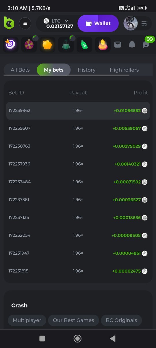 This is rare for me. I know i will probably lost everything on the next bet. Small wins will accumulate, so play it calm and safe guys.