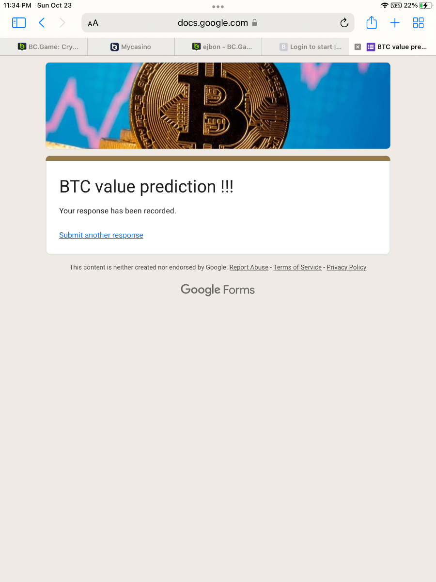so read rules again.  why are we even posting a bet?  why not just guess on the google form?  seems silly as the bet is meaningless.