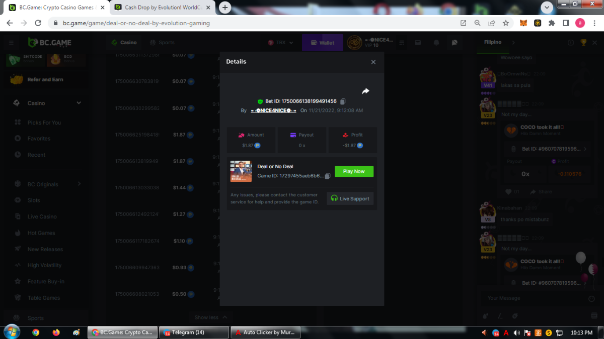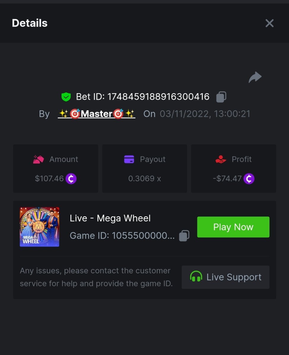 Msdark Posted November 11, 2022 Share Posted November 11, 2022 Hi, I've been playing a lot on 'Evolution auto roulette' deos it count to be participation on cash drop? I have wagered 119000 simce the beginning of November. Link to comment Share on other sites More sharing options...