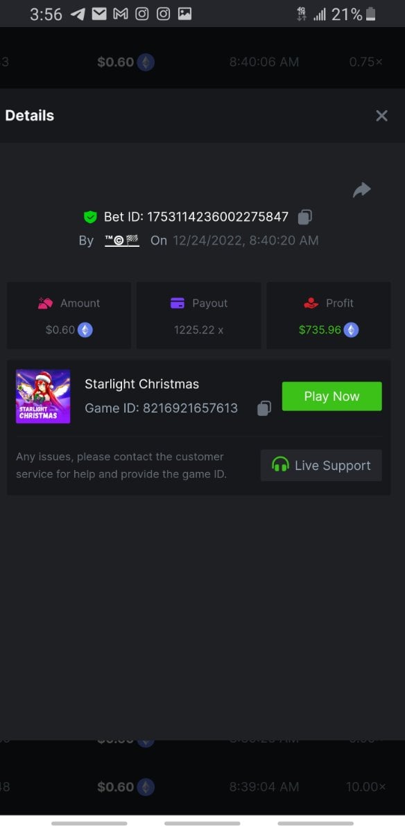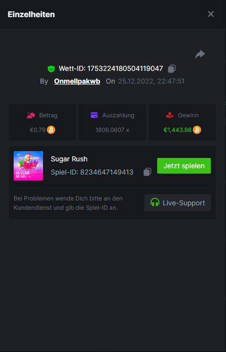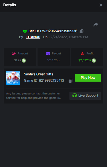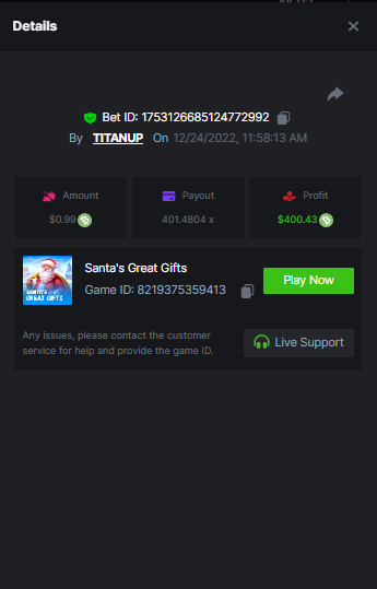 TITANUP Posted December 24, 2022 Share Posted December 24, 2022 (edited) https://bc.game/#/sd/10ZXYWKJHF10CZ https://bc.game/#/sd/10ZY1U8BPUV21F Edited December 24, 2022 by TITANUP got another multiplier that was 1014x @ $2.00 1 Link to comment Share on other sites More sharing options...