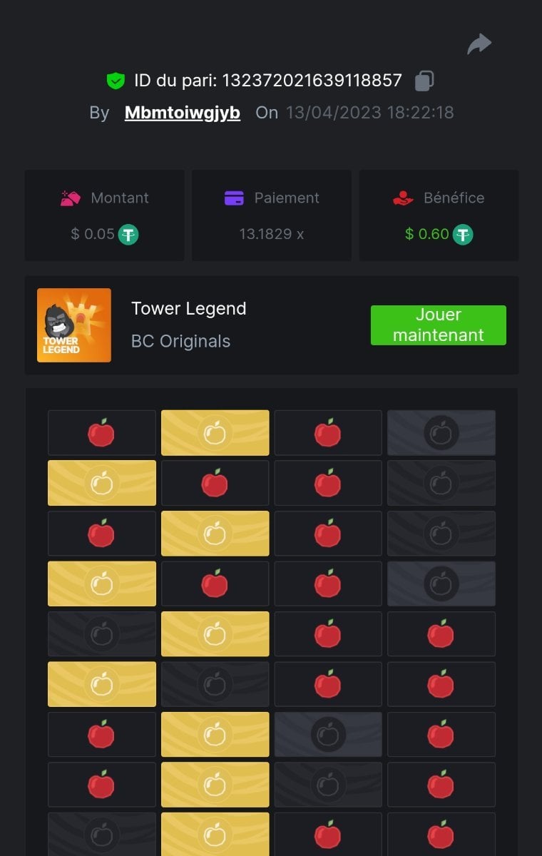 Member AkSyEn03 Posted April 7, 2023 Member Share Posted April 7, 2023 LÉGENDE DE LA TOUR $48 Exclusif Prestige TOWER LEGEND Challenge #83 Début : 07 avril 09h00 UTC ️Fin : 14 avril à 09h00 UTC Cagnotte : 48 $ ️ Qu'est-ce que le défi Salut les VIP ! Enfilez vos baskets et courez jusqu'au SOMMET de chaque tour pour remporter la cagnotte de cette semaine ! Veuillez consulter ci-dessous le tout nouveau tableau de distribution de la cagnotte pour en savoir plus. Nous allons essayer cette nouvelle méthode pendant un certain temps et en fonction des participations et des retours, nous augmenterons encore nos cagnottes. Prix disponibles 1er..............$15 2ème..........$10 3ème..........$5 4 à 13.........$2 Rejoignez et faites un basebet d'au moins 0,15, vous pouvez rejoindre 2 événements en même temps événement régional événement forum et obtenez une double récompense !!! Min Payout : Atteignez le sommet d'une tour à n'importe quel niveau de difficulté. Niveau VIP minimum : pas de niveau VIP minimum Mise minimale Facile – 0.05 $ Moyen - 0,025 $ Dur – 0,0125 $ Extrême - 0,00625 $ Cauchemar - 0,003125 $ Lisez les détails complets et les règles sur la PAGE DE L'ÉVÉNEMENT SOUMETTRE VOS INSCRIPTIONS ICI BCGAME Link to comment Share on other sites More sharing options...