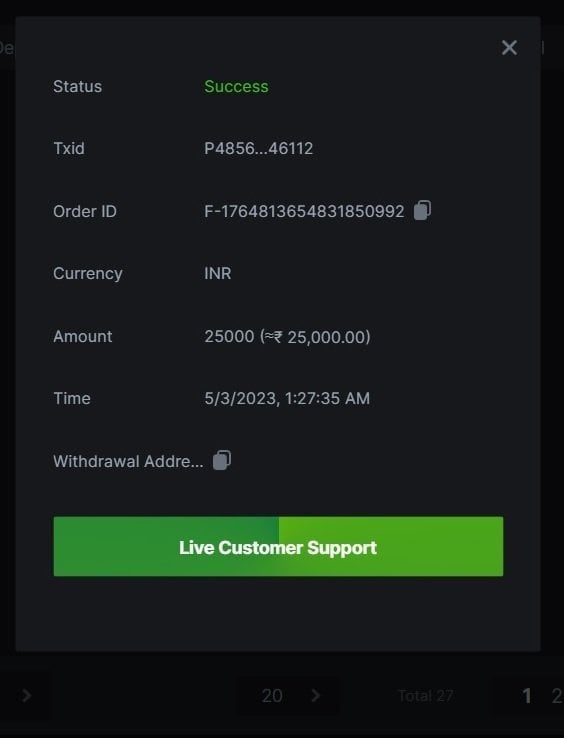 7 days ago i had done two withdrawals of 25000 inr each and i had received one of the withdrawal of inr 25000 in 2-3 hrs but i never received the other 25000 inr in my bank account (even though on the transacton page it showed both the withdrawals as successful) i raised the query to bcgame support and i was told by the support to wait for 24 hrs as it can take that much time) then the wait game began 24 hrs passed i never received the withdrawal i checked with my bank they affirmed that only one of the 25000 inr was received the other wasnt, i immediately contacted support again this time they said to wait for another 2 days as the withdrawal based system might take 72 hrs and then it gets resolved