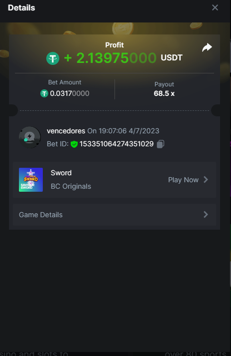 Moderator Giandreas Posted July 4, 2023 Moderator Share Posted July 4, 2023 Read Carefully Before Start To Hunt Forum Daily Challenges #286 SWORDHunt : Win the highest pay out Min Payout requirement 30x Min Level 4️Duration Starting : Now End time : 23.59 UTC Time How to Join? Make screenshot + paste your bet link + UID or Profile link Any coin, with min bet 0.01 USD is allowed (jb/bb/bcl not allowed)Reward Prizes 1st Place.....$7 BCD 2nd Place.....$5 BCD 3rd Place.....$4 BCD 4th Place.....$3 BCD 5th Place.....$2 BCD 🏵 Winners will be announcing next day after Roll Point! Link to comment Share on other sites More sharing options...