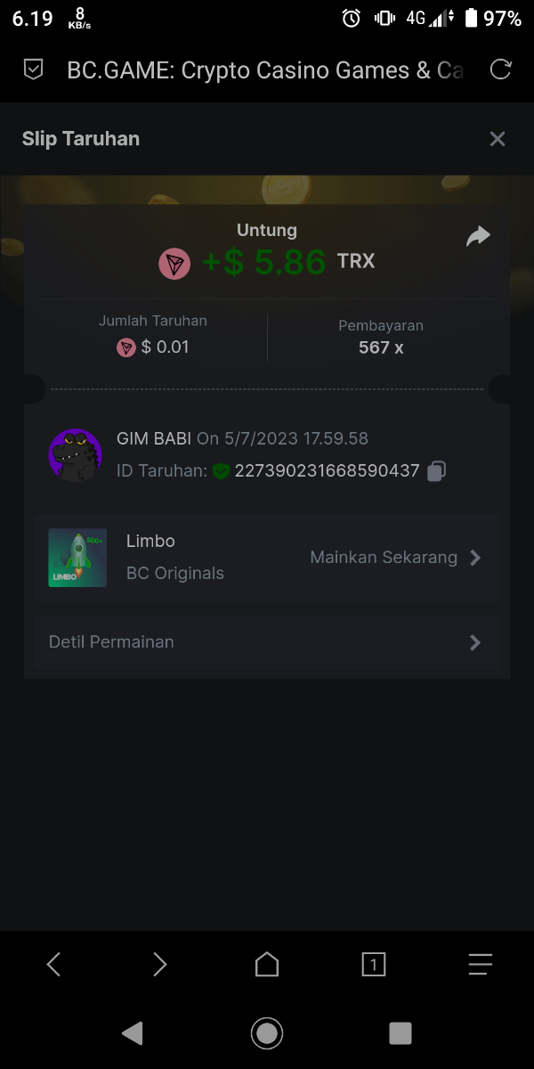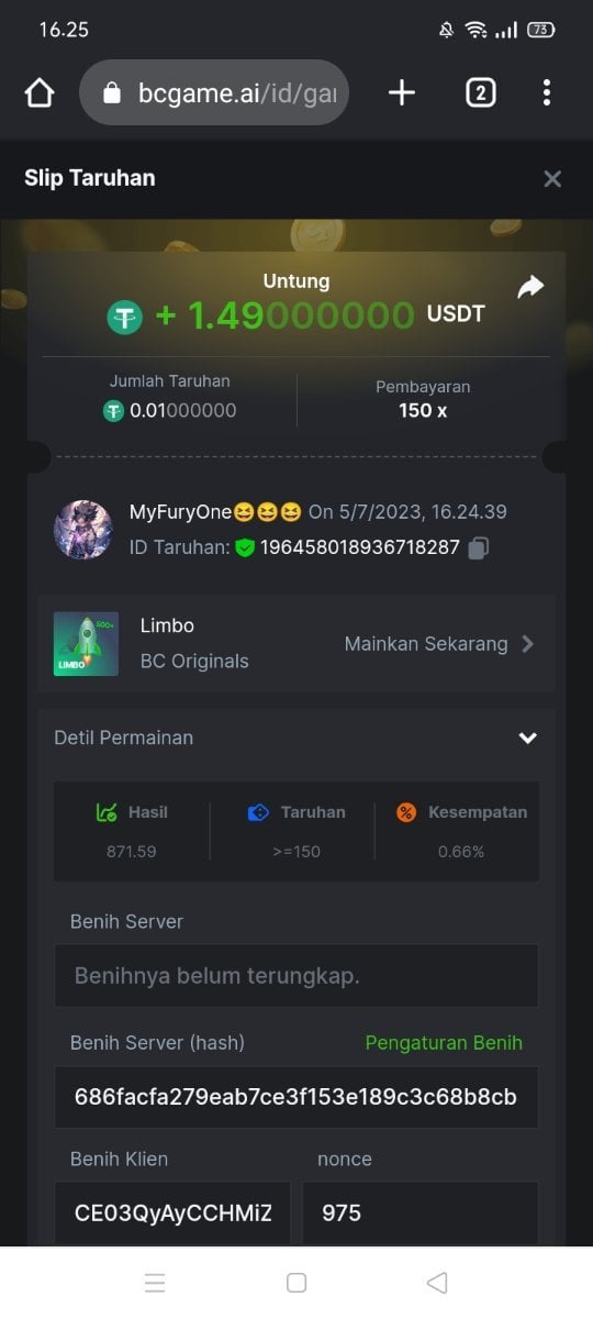 Moderator Giandreas Posted July 5, 2023 Moderator Share Posted July 5, 2023 Read Carefully Before Start To Hunt Forum Daily Challenges #287 LimboHunt : Win the highest pay out Min Payout requirement 20x Min Level 4️Duration Starting : Now End time : 23.59 UTC Time How to Join? Make screenshot + paste your bet link + UID or Profile link Any coin, with min bet 0.01 USD is allowed (jb/bb/bcl not allowed)Reward Prizes 1st Place.....$7 BCD 2nd Place.....$5 BCD 3rd Place.....$4 BCD 4th Place.....$3 BCD 5th Place.....$2 BCD 🏵 Winners will be announcing next day after Roll Point! Link to comment Share on other sites More sharing options...