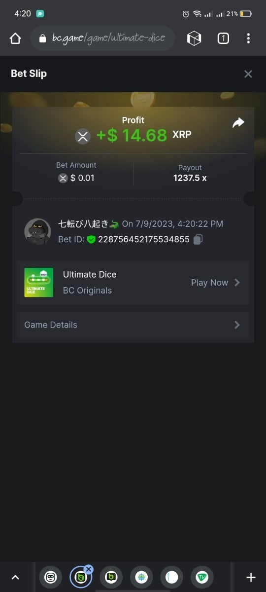 Moderator Giandreas Posted July 9, 2023 Moderator Share Posted July 9, 2023 Read Carefully Before Start To Hunt Forum Daily Challenges #291 Ultimate Dice Hunt : Win the highest pay out Min Payout requirement 40x Min Level 4 ️Duration Starting : Now End time : 23.59 UTC Time How to Join? Make screenshot + paste your bet link + UID or Profile link Any coin, with min bet 0.01 USD is allowed (jb/bb/bcl not allowed) Reward Prizes 1st Place.....$7 BCD 2nd Place.....$5 BCD 3rd Place.....$4 BCD 4th Place.....$3 BCD 5th Place.....$2 BCD 🏵 Winners will be announcing next day after Roll Point! Link to comment Share on other sites More sharing options...