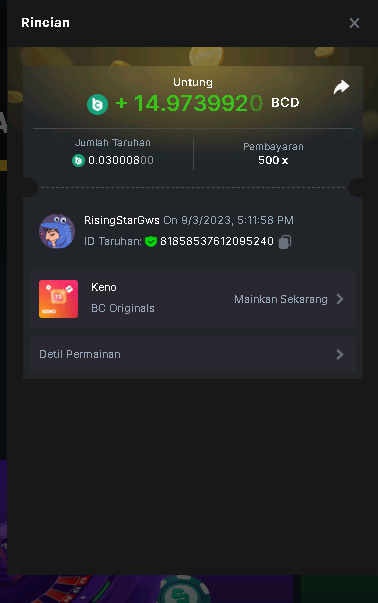 Moderator Giandreas Posted September 3, 2023 Moderator Share Posted September 3, 2023 (edited) Read Carefully Before Start To Hunt Forum Daily Challenges #347 Keno Hunt : Keno Win the highest pay out Min Payout min 90x Min Level 4 ️Duration Starting : Now End time : 23.59 UTC Time How to Join? Make screenshot + paste your bet link + UID or Profile link Any coin, with min bet 0.01 USD is allowed (jb/bb/bcl not allowed) Reward Prizes 1st Place.....$7 BCD 2nd Place.....$5 BCD 3rd Place.....$4 BCD 4th Place.....$3 BCD 5th Place.....$2 BCD 🏵 Winners will be announcing next day after Roll Point! Edited September 3, 2023 by Kikikom Link to comment Share on other sites More sharing options...
