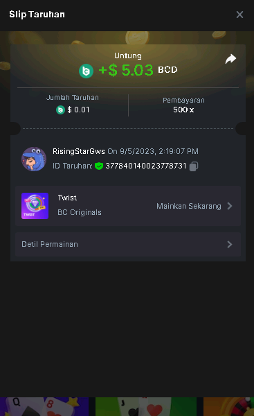 2nd place . . . .  5$ BCD  - RisingStarGws - 500x  5.03