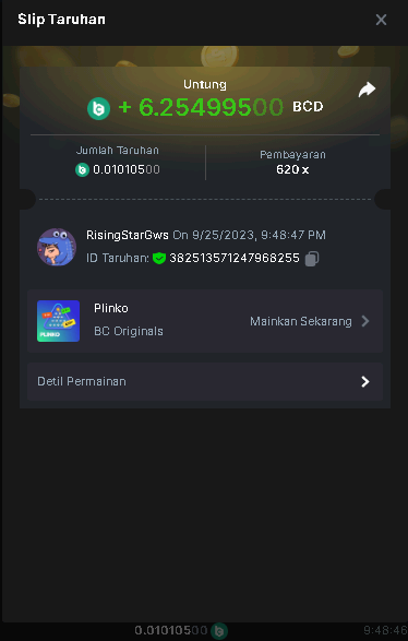 Moderator Giandreas Posted September 25, 2023 Moderator Share Posted September 25, 2023 Read Carefully Before Start To Hunt Forum Daily Challenges #368 PlinkoHunt : Plinko Win the highest pay out Min Payout : x120 Min Level 4️Duration Starting : Now End time : 23.59 UTC Time How to Join? Make screenshot + paste your bet link + UID or Profile link Any coin, with min bet 0.01 USD is allowed (jb/bb/bcl not allowed)Reward Prizes 1st Place.....$7 BCD 2nd Place.....$5 BCD 3rd Place.....$4 BCD 4th Place.....$3 BCD 5th Place.....$2 BCD 🏵 Winners will be announcing next day after Roll Point! Link to comment Share on other sites More sharing options...