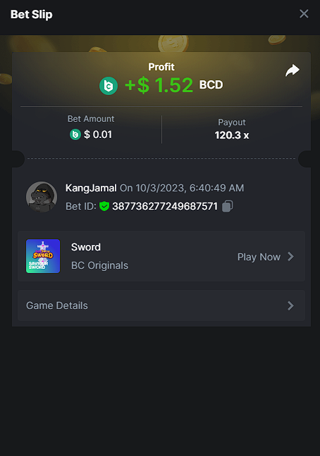 Moderator Giandreas Posted October 2, 2023 Moderator Share Posted October 2, 2023 Read Carefully Before Start To Hunt Forum Daily Challenges #375Hunt : Sword Win the highest pay out Min Payout : x20 Min Level 4️Duration Starting : Now End time : 23.59 UTC Time How to Join? Make screenshot + paste your bet link + UID or Profile link Any coin, with min bet 0.01 USD is allowed (jb/bb/bcl not allowed)Reward Prizes 1st Place.....$7 BCD 2nd Place.....$5 BCD 3rd Place.....$4 BCD 4th Place.....$3 BCD 5th Place.....$2 BCD 🏵 Winners will be announcing next day after Roll Point! 2 Link to comment Share on other sites More sharing options...