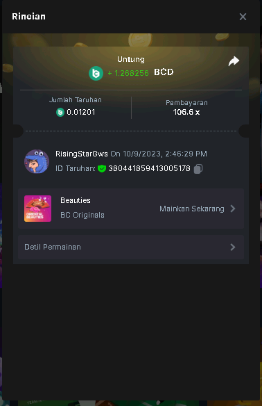 Moderator Giandreas Posted October 9, 2023 Moderator Share Posted October 9, 2023 Read Carefully Before Start To Hunt Forum Daily Challenges #382Hunt : Oriental Beauties Win the highest pay out Min Payout : min x20 Min Level 4️Duration Starting : Now End time : 23.59 UTC Time How to Join? Make screenshot + paste your bet link + UID or Profile link Any coin, with min bet 0.01 USD is allowed (jb/bb/bcl not allowed)Reward Prizes 1st Place.....$7 BCD 2nd Place.....$5 BCD 3rd Place.....$4 BCD 4th Place.....$3 BCD 5th Place.....$2 BCD 🏵 Winners will be announcing next day after Roll Point! Link to comment Share on other sites More sharing options...
