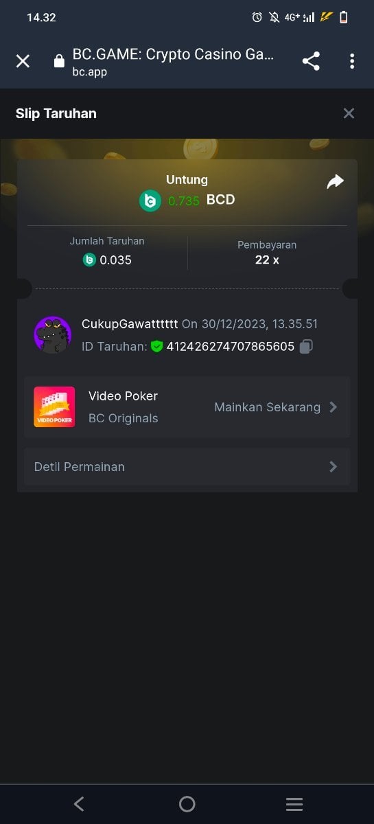 4th    CukupGawatttttt  22x  0.73……..Win 3bcd