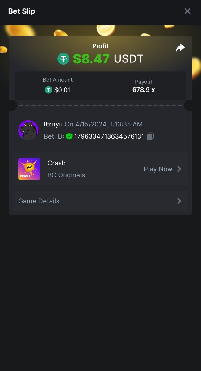 🔹 Any coin, with min bet 0.01 USD is allowed (jb/bb/bcl not allowed)