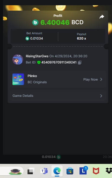 2nd place . . . .RisingStarGws   620 x 6.4 . . . .5$ BCD