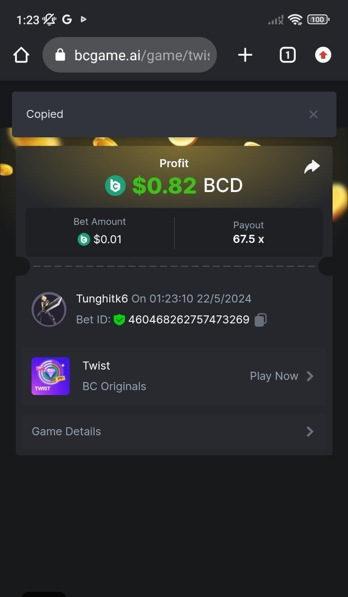 Moderator Giandreas Posted May 22, 2024 Moderator Share Posted May 22, 2024 Read Carefully Before Start To Hunt Forum Daily Challenges #608Hunt : twist Win the highest pay out Min Payout : 17x Min Level 10️Duration Starting : Now End time : 23.59 UTC Time How to Join? Make screenshot + paste your bet link + UID or Profile link Any coin, with min bet 0.01 USD is allowed (jb/bb/bcl not allowed)Reward Prizes 1st Place.....$7 BCD 2nd Place.....$5 BCD 3rd Place.....$4 BCD 4th Place.....$3 BCD 5th Place.....$2 BCD 🏵 Winners will be announcing next day after Roll Point! Link to comment Share on other sites More sharing options...