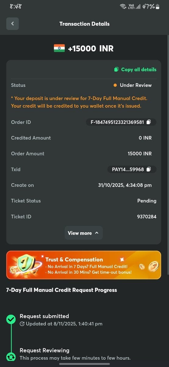 LeEappu Posted December 31, 2025 Share Posted December 31, 2025 (edited) BC GAME DEPOSIT FRAUD I have been facing a serious issue with a deposit that was successfully paid from my side but has not been credited to my BC.Game account. I have provided every proof possible, yet I have received no resolution or meaningful support. Deposit Issue Details BC Game ID: 5160414 Amount: 15000 INR UTR: 391557750002 Order ID: F-1847495123321369581 TxID: 59968 Date & Time: 31/10/2025, 4:34:08 pm Status Shown on BC.Game: Canceled Credited Amount: 0 INR What Actually Happened I paid 15000 INR successfully through UPI. The amount was debited from my bank account. I have attached: Bank statement Payment confirmation screenshots Video proof of the transaction After creating a support ticket, it was canceled automatically, with no help provided. I contacted the merchant, and they confirmed they received the payment, but said I must contact BC.Game support for the credit. Unfortunately, BC.Game support: Provides only automated bot replies Does not offer any human assistance Does not respond to emails at [email protected] Leaves tickets pending for long periods with no action Why I Am Posting Here I have exhausted all official support channels: Live chat only replies with repetitive bot responses Email support has not responded for a long time Discord moderators simply redirect users back to the live chat bot In this case, the system clearly shows a deposit failure, but the amount was successfully received by the merchant, and all proof from my side is genuine and already submitted. I am requesting a manual review of this transaction, as this is serious and concerns real money lost due to system failure. Request Please review my transaction manually and credit the deposit amount to my account, or process a refund if crediting is not possible. All data, screenshots, and video proof can be re-submitted if needed. I hope this issue can be resolved professionally and promptly. Thank you. Edited December 31, 2025 by LeEappu Link to comment Share on other sites More sharing options...