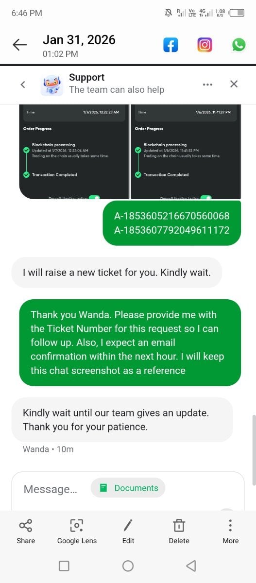 Peacock1988 Posted February 1 Share Posted February 1 my withdrawal services for over 30 days. Despite my account ([email protected]) being fully verified Support Failure: Agents "Wanda" and "Jenson" have repeatedly stalled the process, promising tickets that are never issued and providing no resolution timeline. Last As requested, I have attached a screen-recording showing my verified OKX account and the full transaction details for the deposits. You can clearly see: Transaction ID: 0xff6...feaaa (matching the USDT deposit). My verified profile matching my registered email. I have provided everything you asked for over the past month. Please restore my withdrawal service Link to comment Share on other sites More sharing options...