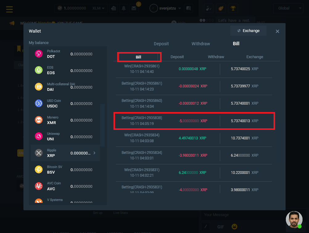 svenjatzu Posted October 11, 2020 Share Posted October 11, 2020 Hey there i got a problem with a round at crash. After contacting the support i recieved the following mesage like following on later, first of all my problem. i was at balance: 10.7374001 xrp After placing bet for round in value 0.4 xrp Win(CRASH-2935834) 10-11 04:05:19 i changed betsize to 0.7374001 for betamaount of the next round to have a clear balance of 10 xrp if i lose this round. The round started and crash went up, the winning also went up, 0.8 0.9 and than it crashed. after the crash of this round suddenly 5 xrp where taken from my balance and the round crashed at 1.02. i was confused due to i didnt even change the last betamounts value of 0.7374001 xrp. so i looked for what happend but i couldnt understand what happend. the round from crash where my 5 xrp just disappeared without that i placed a bet is Betting(CRASH-2935838) next part coming Link to comment Share on other sites More sharing options...