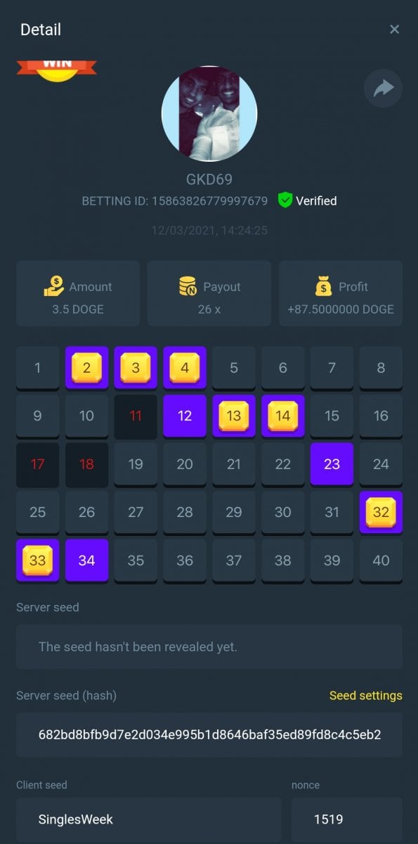Admin BCGame_Bob Posted March 15, 2021 Author Admin Share Posted March 15, 2021 (edited) Hello Dear Participants, now time for results Keno Single Challenge winners 1. Hoya 15 TRX bet 2. CivicMe 5 Doge 3. GKD69 3.5 Doge All prizes will be distributed via PM. Also big thanks to those that took part but never won. Participation is more important than winning. Thank you again. Edited March 15, 2021 by Danny777 1 Link to comment Share on other sites More sharing options...