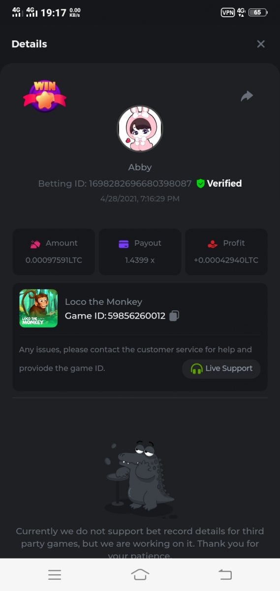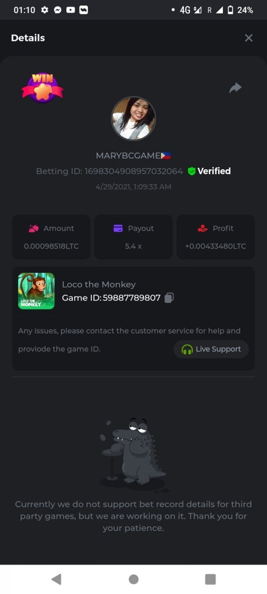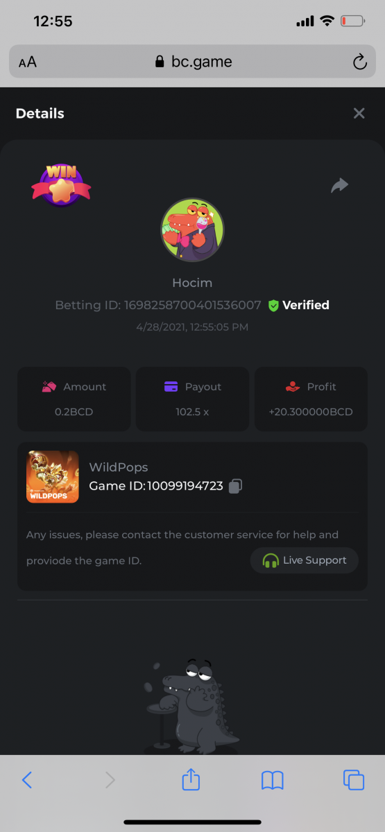 NOluckATall Posted April 28, 2021 Share Posted April 28, 2021 Hi, to all I really loved the contest and I hope to win Also, I don’t know yoko but if is a member from BC, I’ve sure is good person and new’s coco Hair is a compliments for our eyes ^o.-^ Follow my bet Id’s and prints: Loco the Monkey: Payout: 124.56x Bet ID: 1698231296378988672 The Dog House: Payout: 95.7x Bet ID: 1698230651297089664 WildPops Payout: 108.5x Bet ID: 1698210271397958663 Payout sum: 328.76x Gl for all ^^ Link to comment Share on other sites More sharing options...