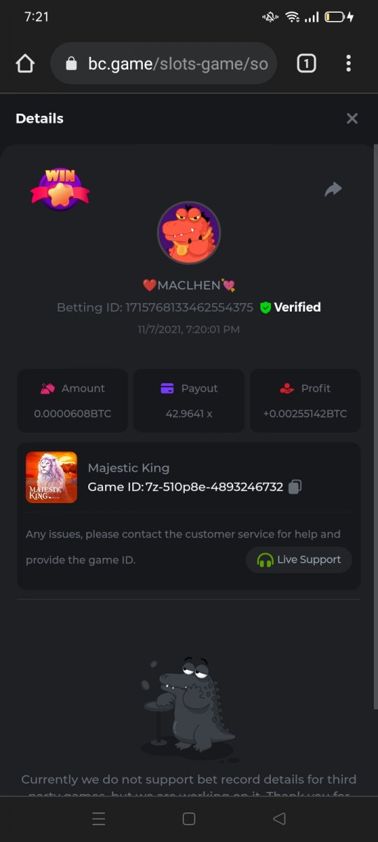Mavrick951 Posted November 8, 2021 Share Posted November 8, 2021 On 11/2/2021 at 1:37 PM, BCGame_Joe said: Starts: 2, November 20:00 GMTEnds: 9, November 20:00 GMT Welcome back, this week we have a Spinomenal slot event, with a huge $4,000 prize pool! The event is simple - get the highest possible multiplier you can on the slots listed below! The top 3 highest multipliers posted for each slot will win one of the ranked prizes! To sweeten the treats a little further, anyone that completes the side bounty will receive a share of $400(details further down). Eligible Games Get the highest multiplier on any (or all) of the 4 slots below Book of Demi Gods III Majestic King Joker Win Demi Gods III Each player can only win 1 prize per slot, if a player submits more than 1 entry for the same slot, only the highest multiplier will count. Can I win a prize for each of the slots? YES - you can win one prize on each of the 4 slots listed + the bounty prize. Minimum VIP Tier Must be VIP08 or higher in order to enter this challenge. Minimum Bet Size Book of Demi Gods III - $0.20 Majestic King- $0.25 Joker Win - $0.20 Demi Gods III - $0.30 Eligible Coins All coins are eligible (excluding JB) Available Prizes Book of Demi Gods III - 1st place $500 2nd place.$250 3rd place$150 Majestic King - 1st place$500 2nd place$250 3rd place$150 Joker Win - 1st place -$500 2nd place$250 3rd place$150 Demi Gods III - 1st place$500 2nd place$250 3rd place$150 50x BOUNTY - Post a bet that shows EXACTLY 50x payout on any of the 4 slots within the timeframe of this challenge and receive a share of a $400! If nobody gets exactly 50x the person/s closest to 50x will win this bounty! How to Enter To enter, copy the bet ID of the bet you'd like to submit Once you've copied it, post it as a reply to this thread like so: Betting ID: 1708854428417660423 In the same post, upload a screenshot of your win by clicking the game ID WITH VIEW IN USD mode ENABLED (accessible at the bottom of dropdown menu for your wallet up top. This way, we can ensure that your bet indeed met the minimum requirement at the time of placing it: Example post - Betting ID: 1715345879721985408 Good Luck Everyone! Heres one book for demi gods 3 EDIT: make that 2 Betting ID: 1715884076127259143 Betting ID: 1715884822680596352 Link to comment Share on other sites More sharing options...
