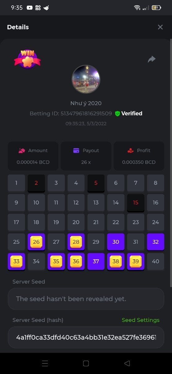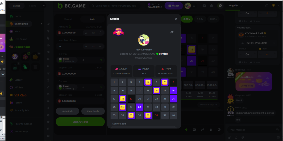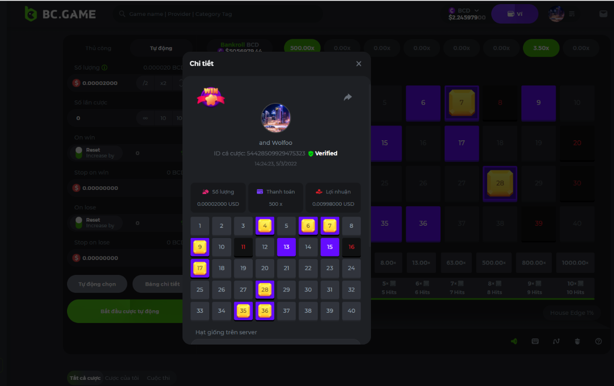 MVP-PQ Posted March 4, 2022 Share Posted March 4, 2022 🏵Mini game CUỐI TUẦN 🏵Thời gian bắt đầu: 00:00 ngày 05/03/2022(GMT+7)Thời gian kết thúc: 23:00 ngày 06/03/2022(GMT+7) TIÊU ĐỀ THỬ THÁCH: Thách thức là gì? Trò chơi:Keno, Keno Multiplayer Người chơi cần phải đạt hits 7 số trở lên. ( Trúng 7 số trở lên) Ai hành động sớm hơn sẽ được công nhận là người chiến thắngVIP tối thiểuKhông có cấp độ VIP tối thiểu.Min bet: $ 0.00001 USDcủa bất kỳ đồng xu nào Giải Thưởng: Gồm 15 giải thưởng mỗi giải 1 BCD 1. Không sử dụng nhiều tài khoản 2. Các cược được gửi trước hoặc sau ngày đến hạn đều không được chấp nhận 3. Người chiến thắng sẽ được công bố 24 giờ sau khi kết thúc thử thách BC Game chúc các bạn có những giây phút vui vẻ và nhiều lợi nhuậnChúc may mắn Link to comment Share on other sites More sharing options...