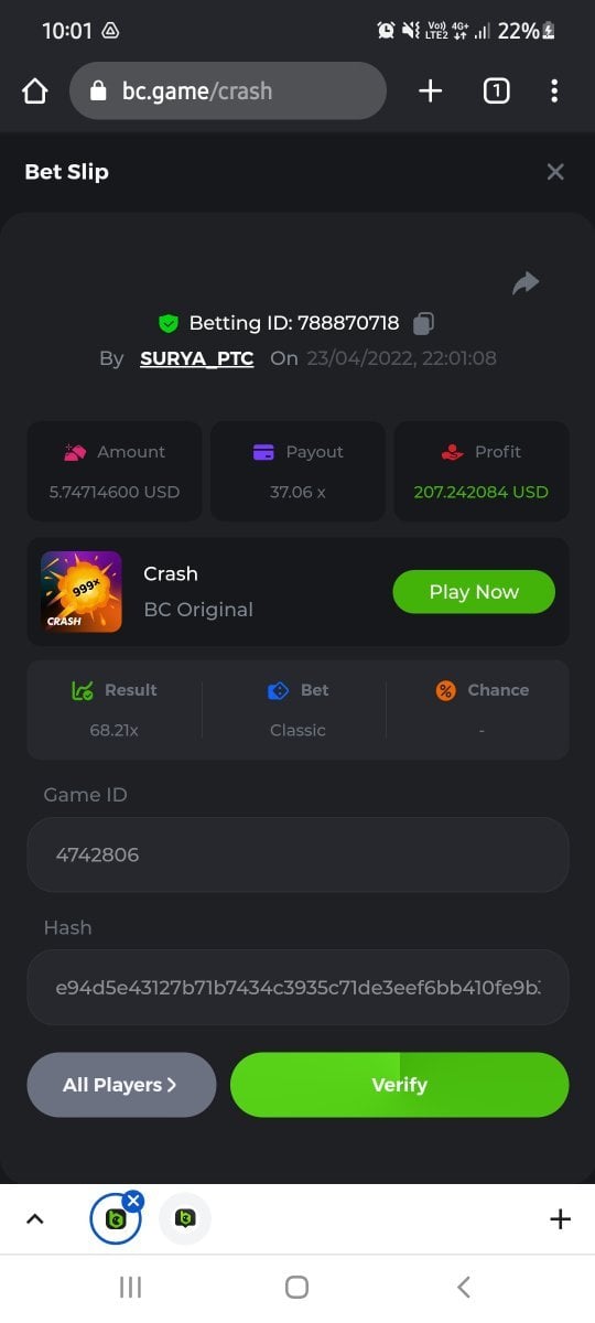 SURYA_PTC Posted May 16, 2022 Share Posted May 16, 2022 In this Topic you can find My Big win Big payout Like My Post https://bc.game/sd/?sd=10J2ITUIENXN2R https://bc.game/sd/?sd=10KJFP75U65D03 https://bc.game/sd/?sd=10KBXXRPVQBPCJ Link to comment Share on other sites More sharing options...